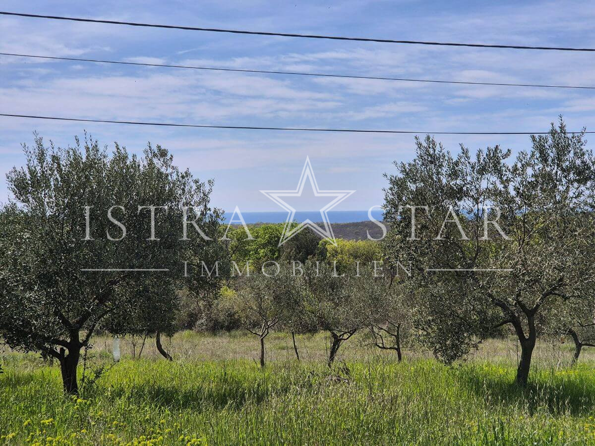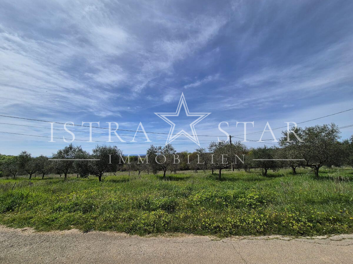 Derzeit wird das Areal als Olivenhain genutzt. Die darauf stehenden Bäume sind ca. 10 Jahre alt. Von der Gesamtfläche liegen 900 m² innerhalb der Baugebietsgrenze, während sich 797 m² landwirtschaftliches Grundstück befinden, das sich von der Südseite her unmittelbar an das Baugrundstück anschließt. Beide Flächen sind im Grundbuch als Eigentum eines einzelnen Grundstücks registriert, jedoch klar voneinander abgegrenzt, sodass eine sichere Nutzungs- und Planungskonstellation gewährleistet ist.