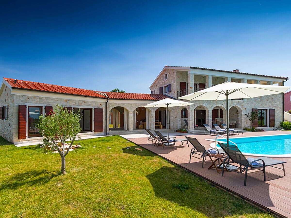 Diese malerische Villa befindet sich in einer kleinen, ruhigen Siedlung in der Nähe von Sv. Lovrec umgeben von wunderschönen Weinbergen, Olivenhainen, Feldern und Wäldern.