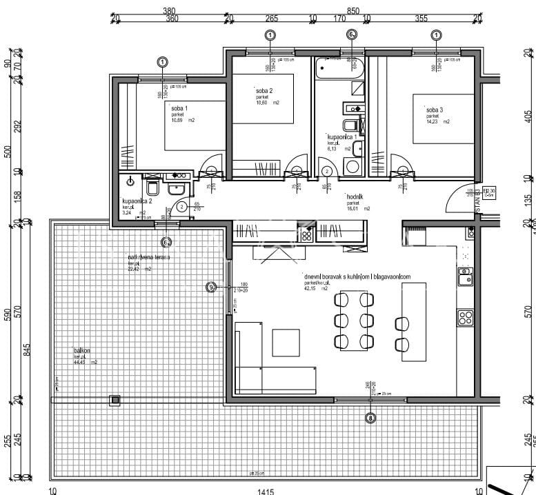 Diese außergewöhnliche Neubauwohnung mit Süd-West-Ausrichtung vereint Großzügigkeit, moderne Architektur und einen hohen Qualitätsstandard in ruhiger Lage nahe Porec. Die Wohnfläche von 171,57 m² wird durch eine beeindruckende Terrassen- und Dachterrassenfläche ergänzt und schafft ein Wohngefühl, das sonst nur selten zu finden ist.