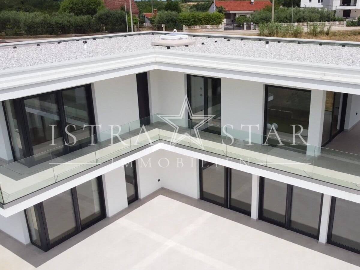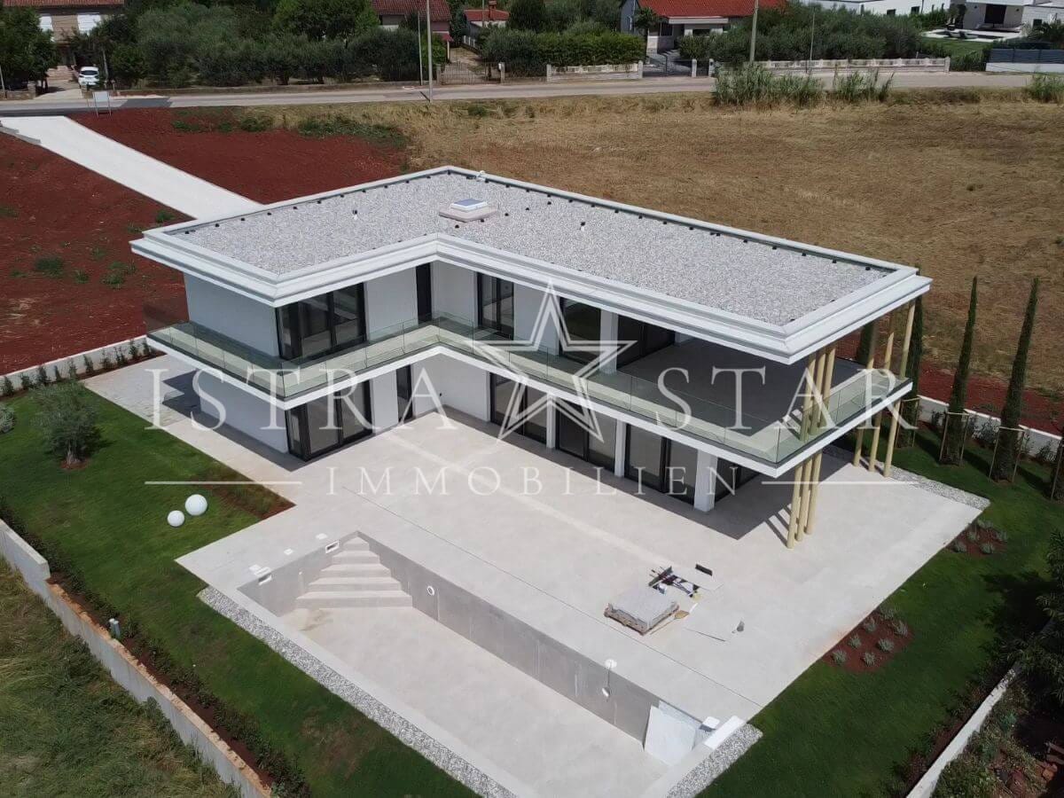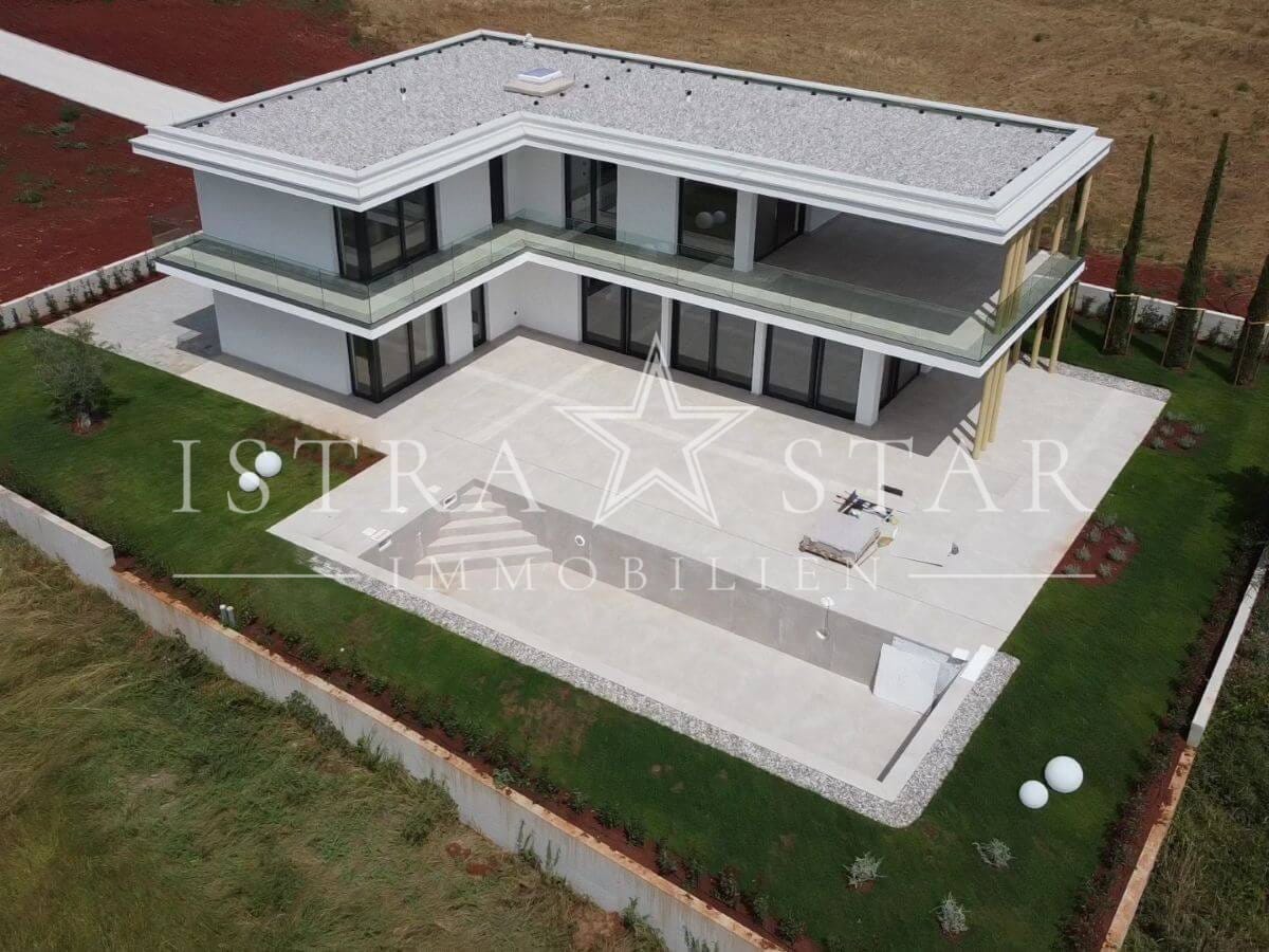 Diese außergewöhnliche Neubau-Villa (Baujahr 2025) vereint moderne Architektur, hochwertige Bauweise und exklusiven Wohnkomfort in einer der gefragtesten Lagen nahe Porec. Ruhig gelegen und dennoch gut angebunden, bietet diese Immobilie einen herrlichen Weitblick bis zum Meer sowie ein perfektes Zusammenspiel aus Privatsphäre, Design und Funktionalität.
