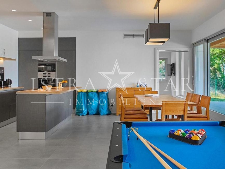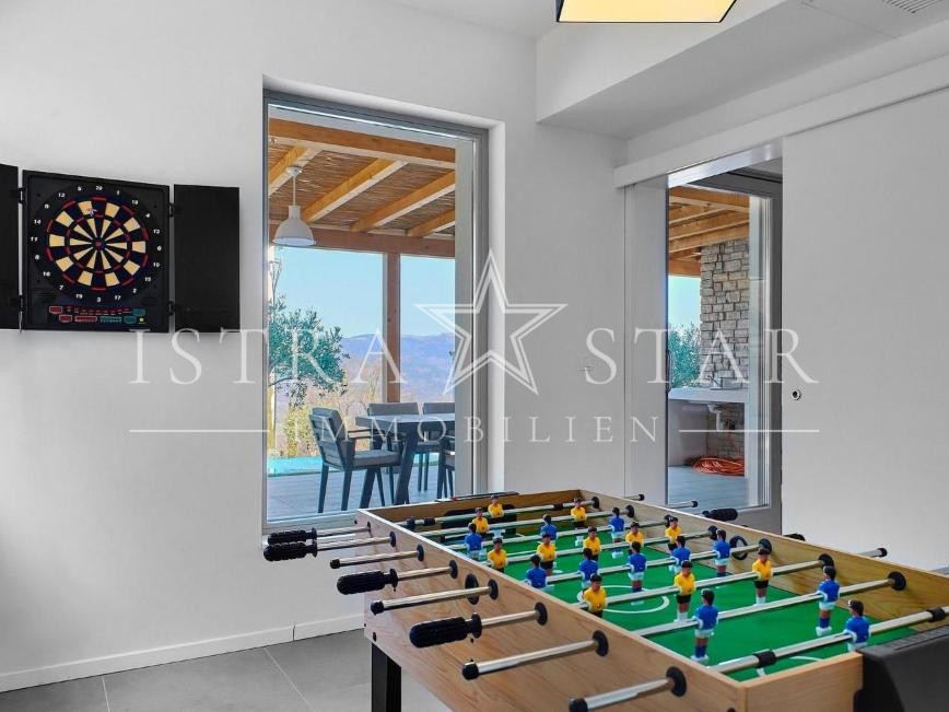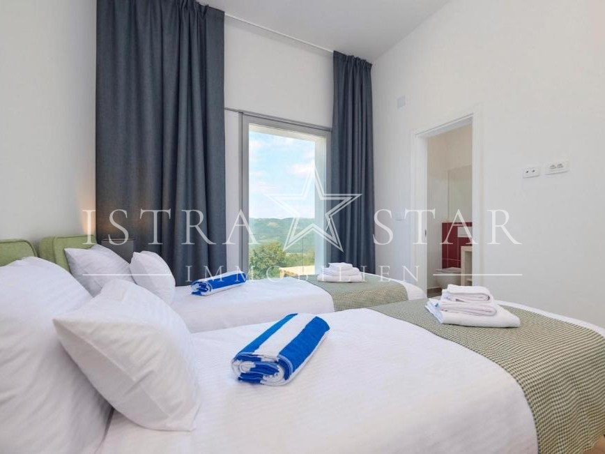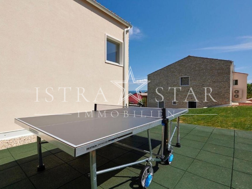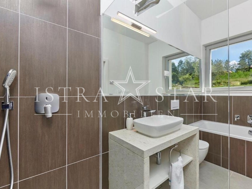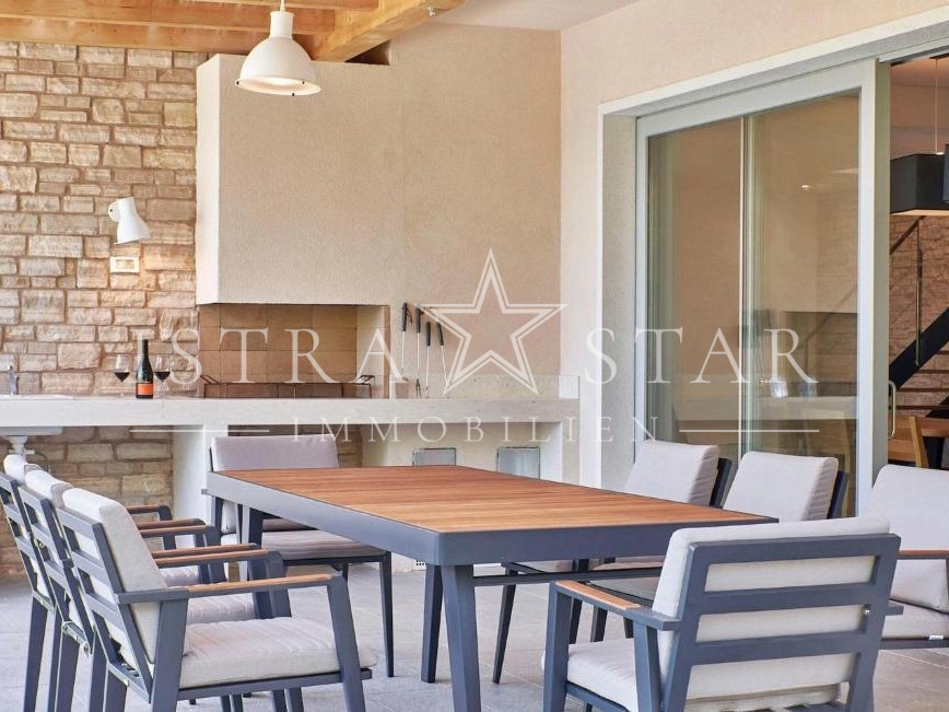 In ruhiger, erhöhter Lage mit freiem Blick über das Tal des Flusses Mirna bis hin zum mittelalterlichen Motovun befindet sich diese freistehende Villa auf einem großzügigen Grundstück von ca. 1.300 m². Das im Jahr 2019 erbaute Anwesen vereint moderne Architektur, hochwertige Technik und mediterranes Lebensgefühl in einer der begehrtesten Naturlagen Istriens.
