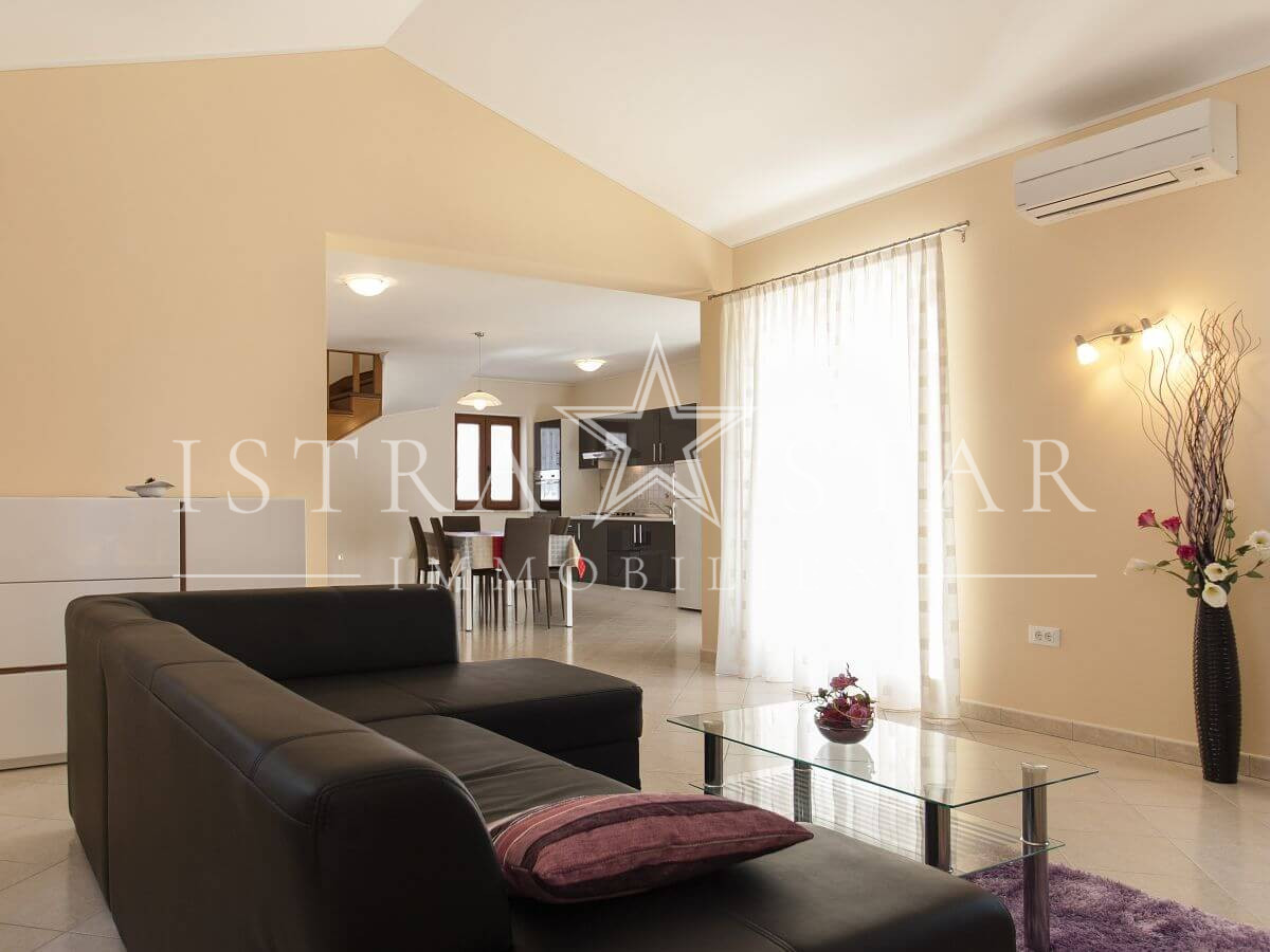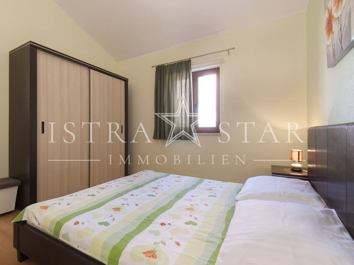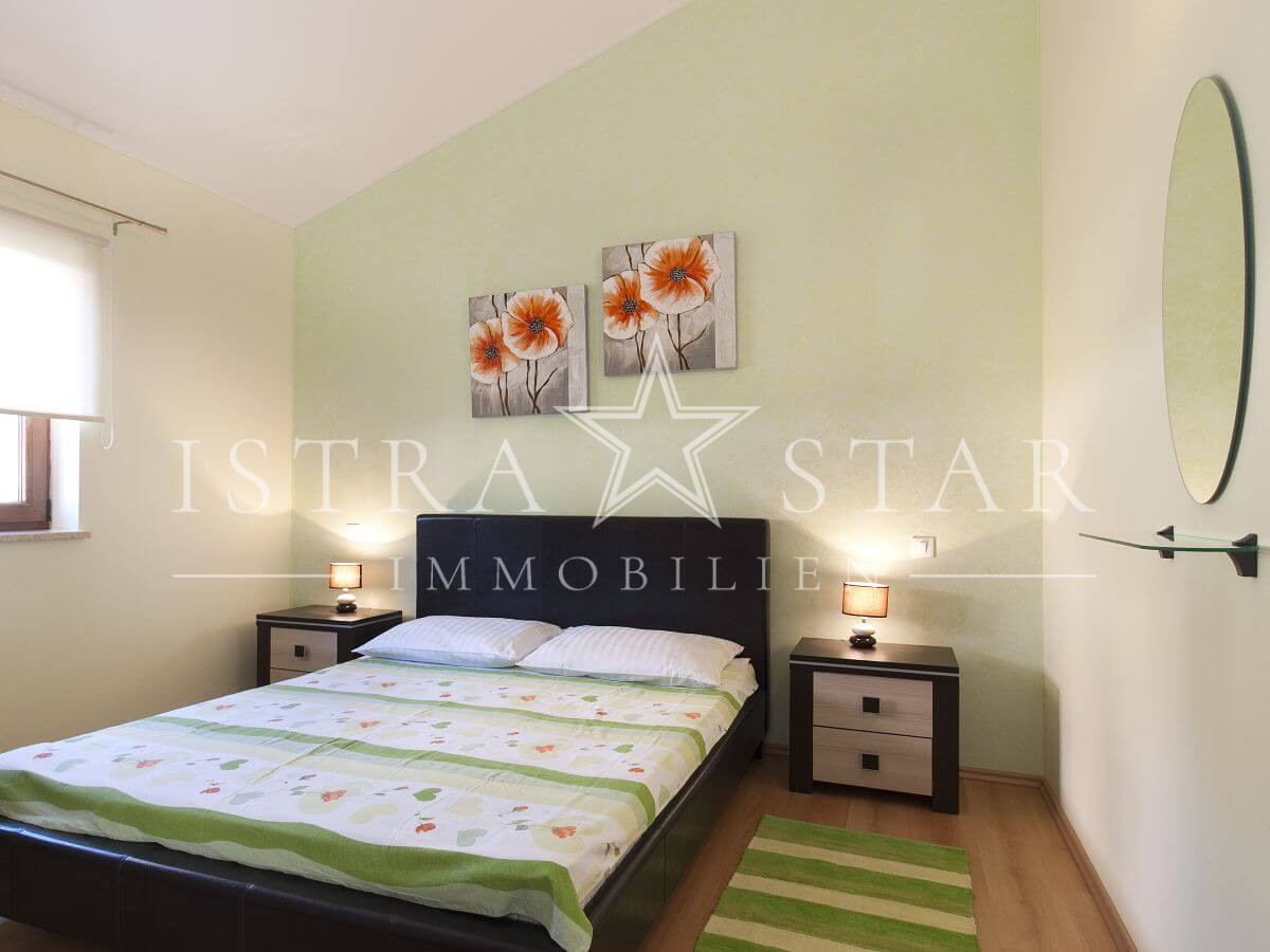 Die Lage ist ruhig und dennoch zentral: Das Meer ist etwa 12 km entfernt, ebenso wie das lebendige Zentrum von Porec, das mit zahlreichen Einkaufsmöglichkeiten, Restaurants und kulturellen Angeboten lockt. In unmittelbarer Nähe befindet sich auch das Ortszentrum, sodass alle wichtigen Einrichtungen bequem erreichbar sind.