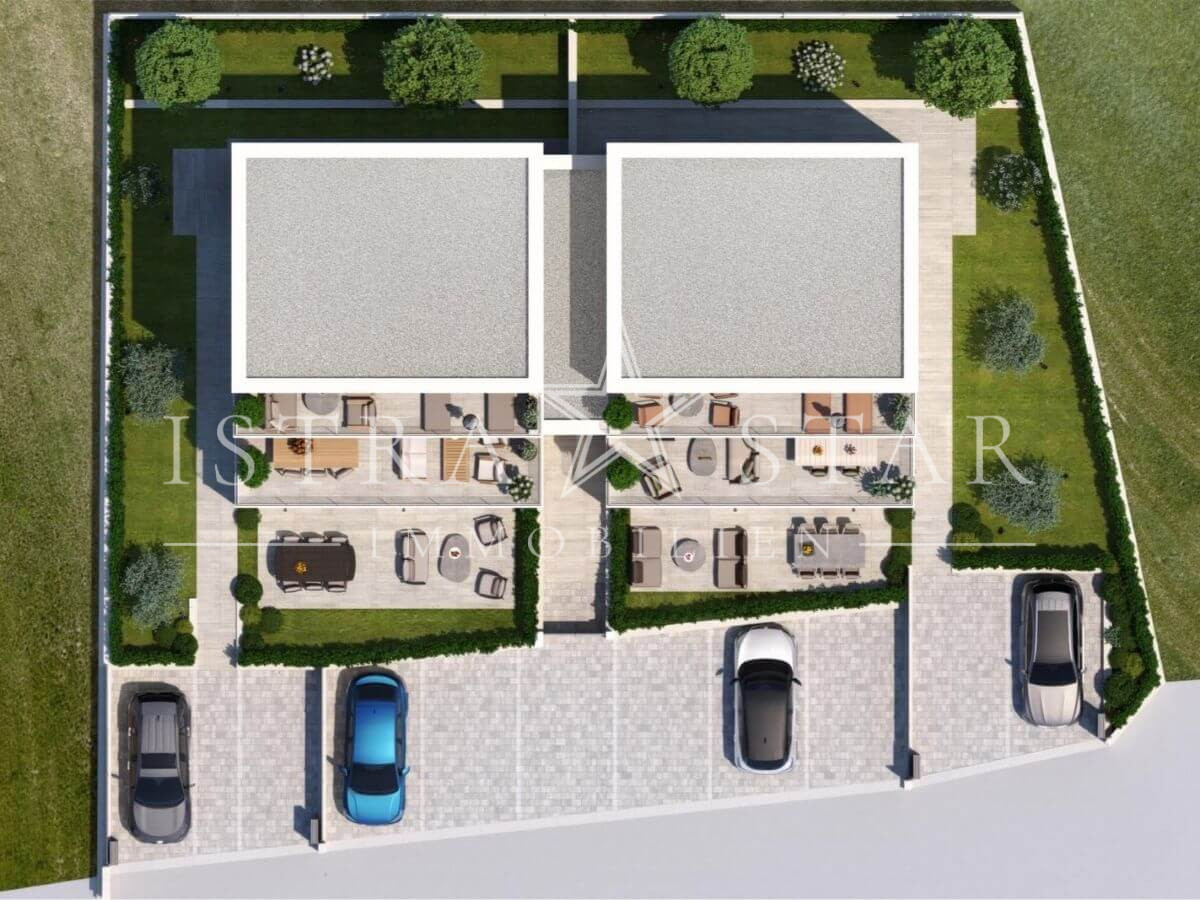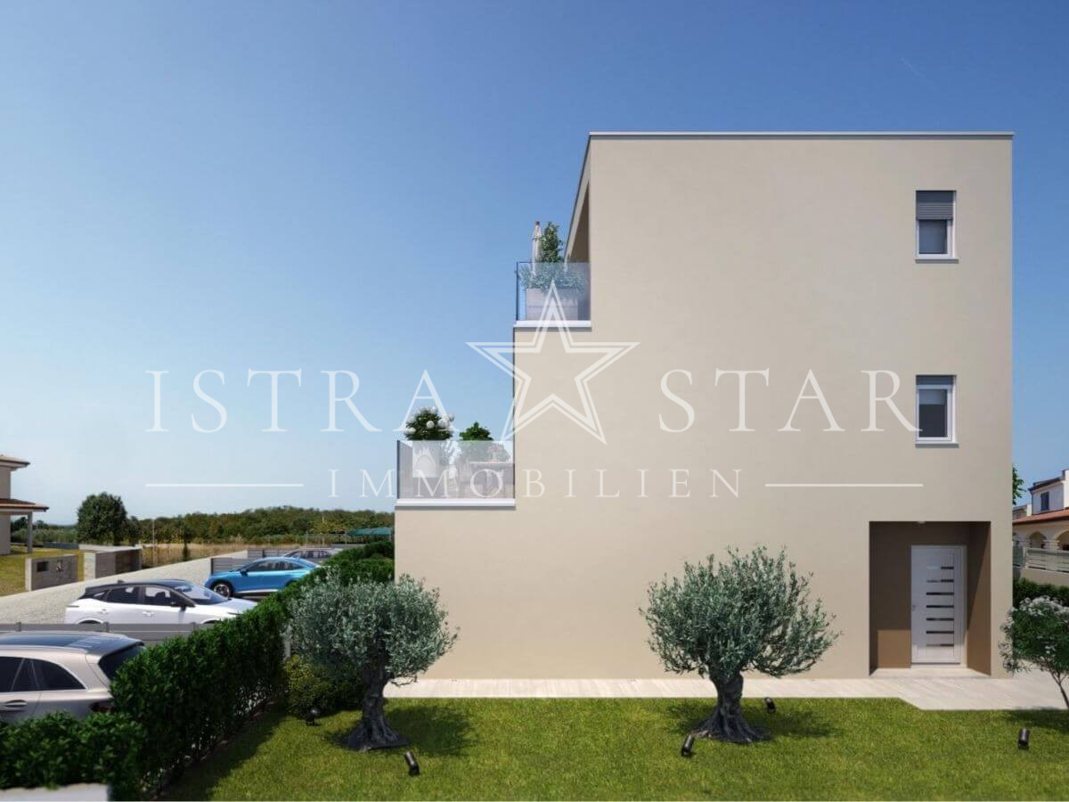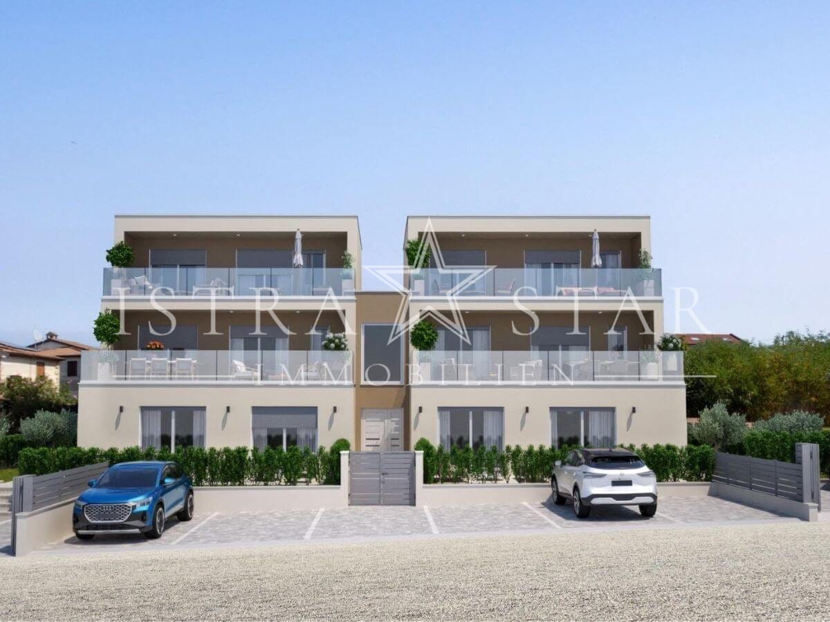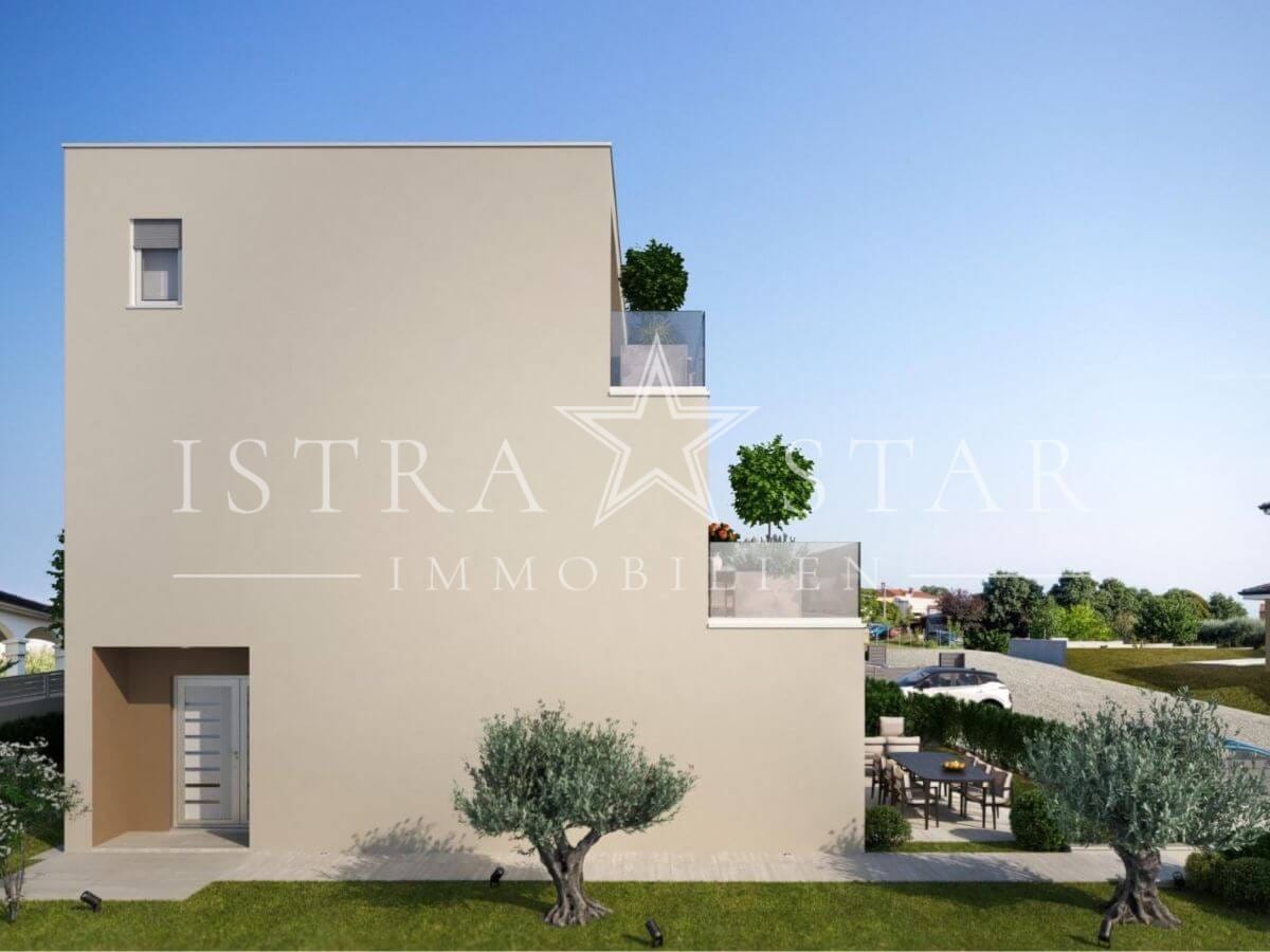 Diese hochwertige Maisonette-Wohnung entsteht in ruhiger Südwestlage nahe Porec und vereint moderne Architektur mit durchdachtem Wohnkomfort. Das Gebäude umfasst lediglich vier Wohneinheiten und bietet ein hohes Maß an Privatsphäre. Die geplante Fertigstellung ist für Frühjahr 2027 vorgesehen.