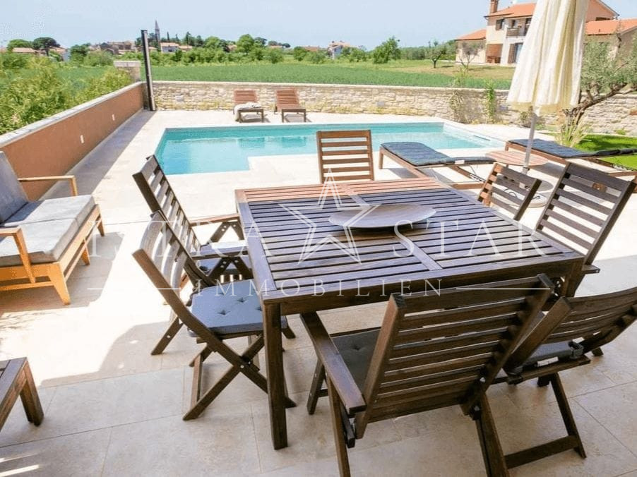 Die Immobilie liegt nur 12 km vom Meer entfernt, während das Zentrum der Ortschaft bequem in ca. 300 m erreichbar ist. In unmittelbarer Nähe finden Sie Geschäfte, Restaurants, Post, Metzgerei und Kindergarten – ideale Infrastruktur in der Nähe. Bis nach Poreč sind es ca. 10 km.
