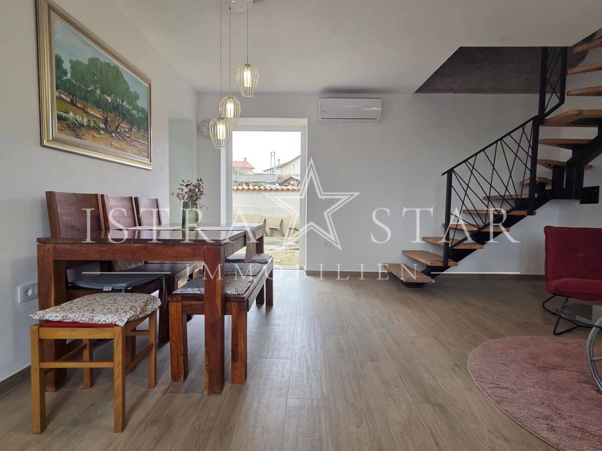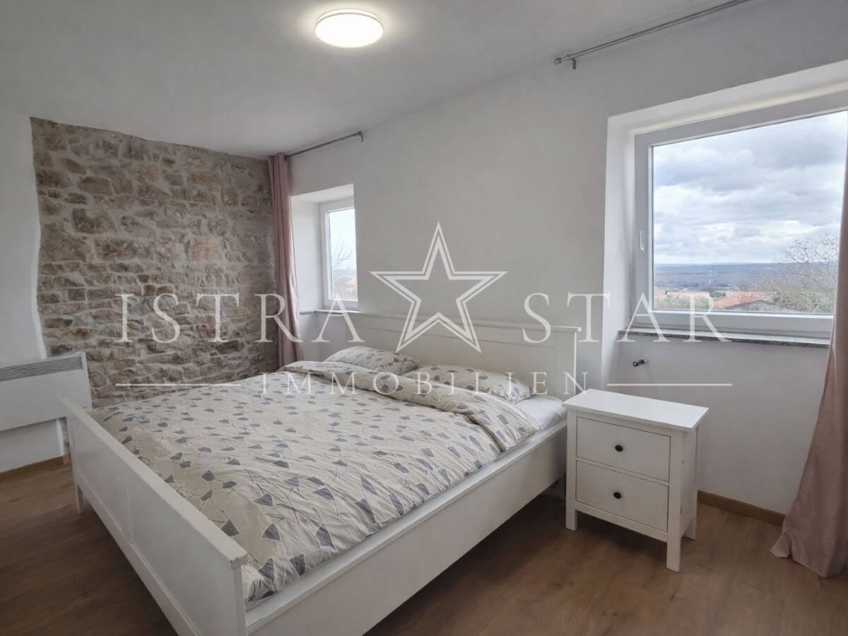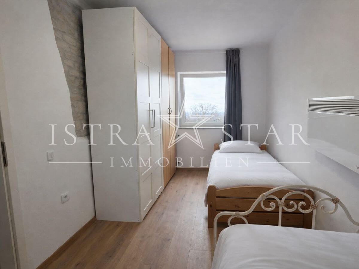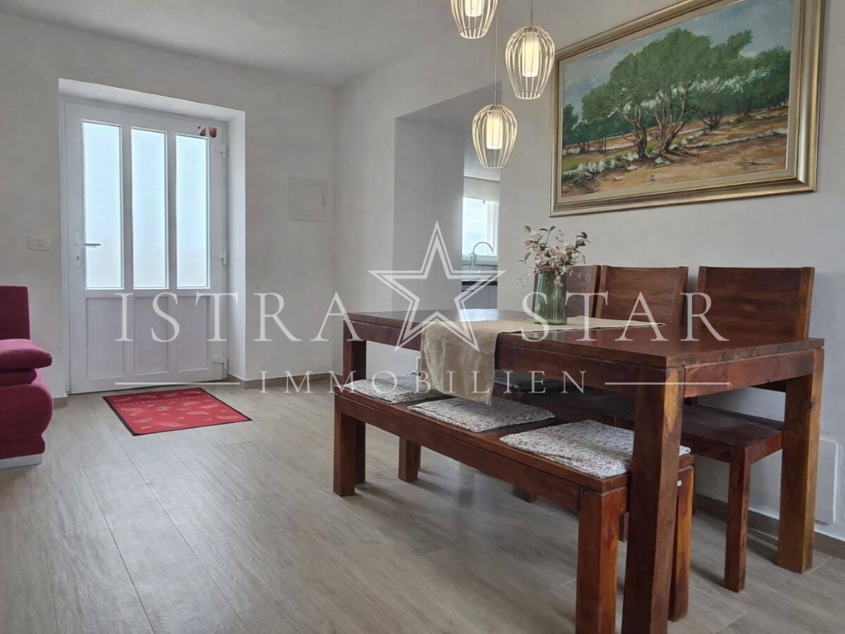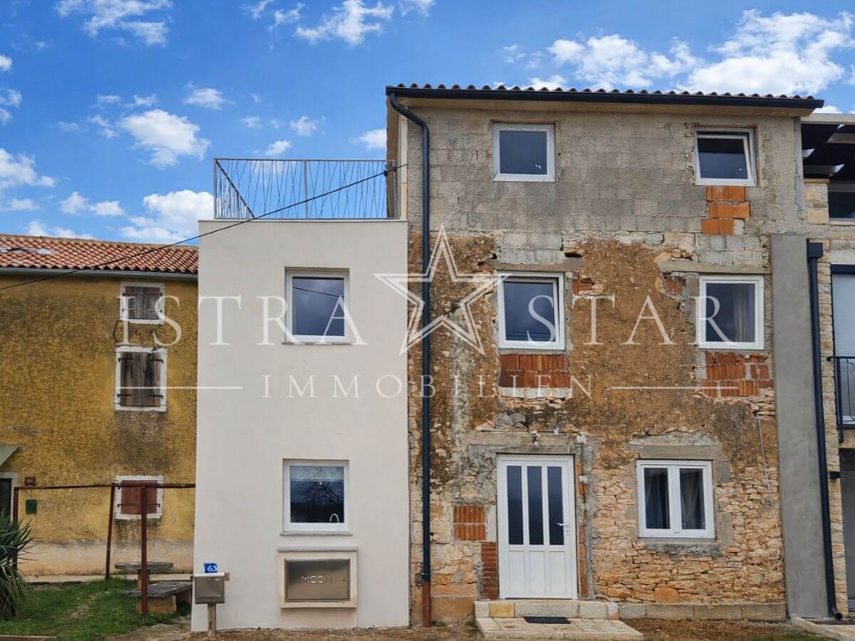 Dieses renovierte istrische Steinhaus vereint authentischen Charme mit moderner Ausstattung und einer ruhigen, begehrten Lage nahe Porec. Auf drei Etagen verteilt sich eine Wohnfläche von ca. 118 m², ergänzt durch einen geschützten Innenhof mit großzügiger Terrasse sowie einen wunderschönen Fernblick bis zum Meer. Die Immobilie wurde 2025 umfassend renoviert und befindet sich aktuell in den letzten Fertigstellungsarbeiten.
