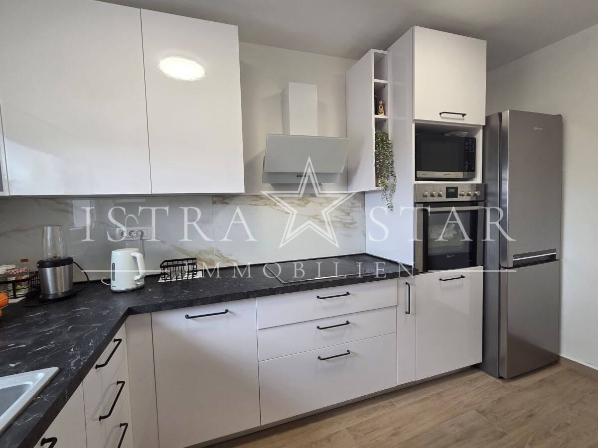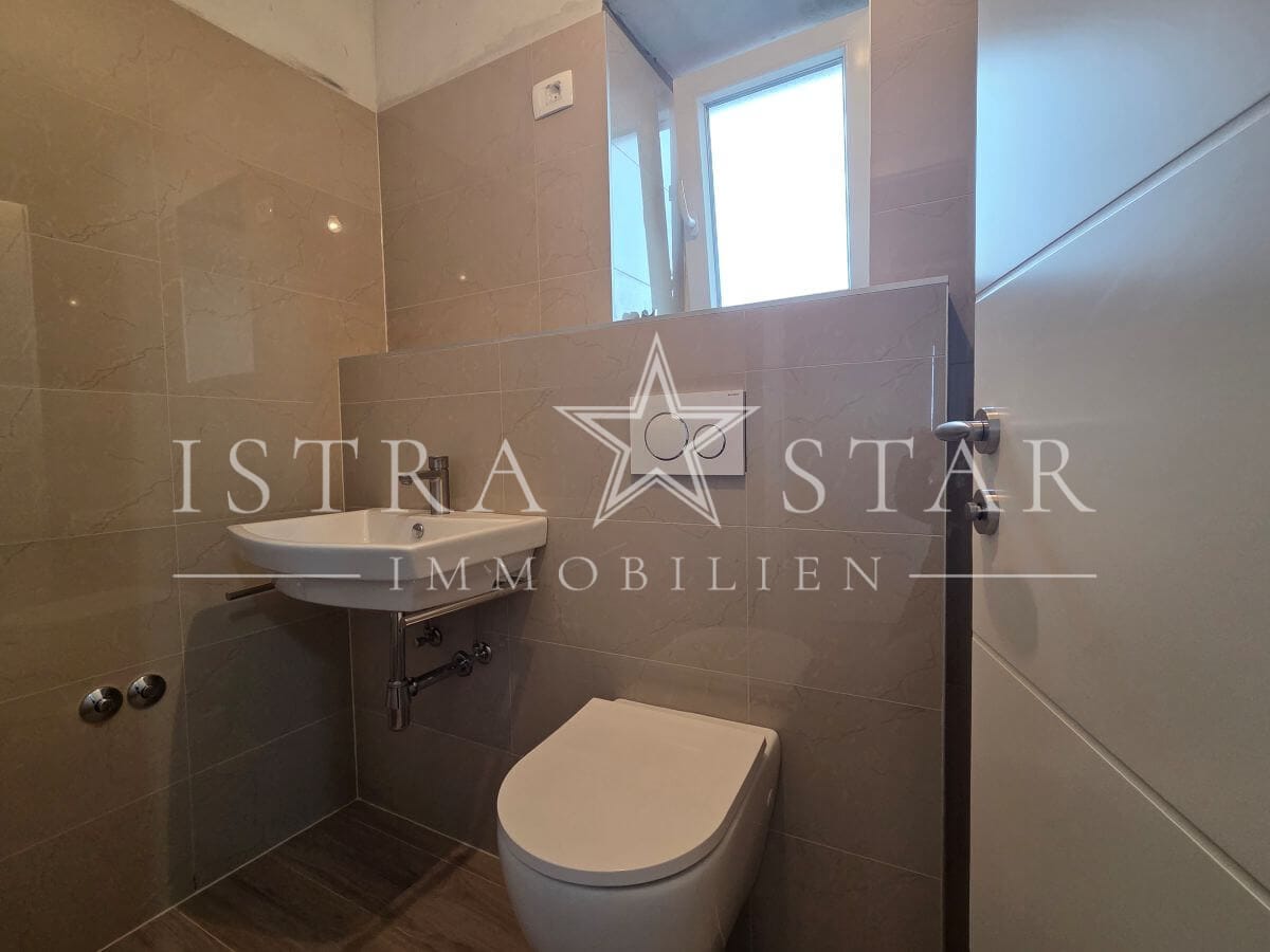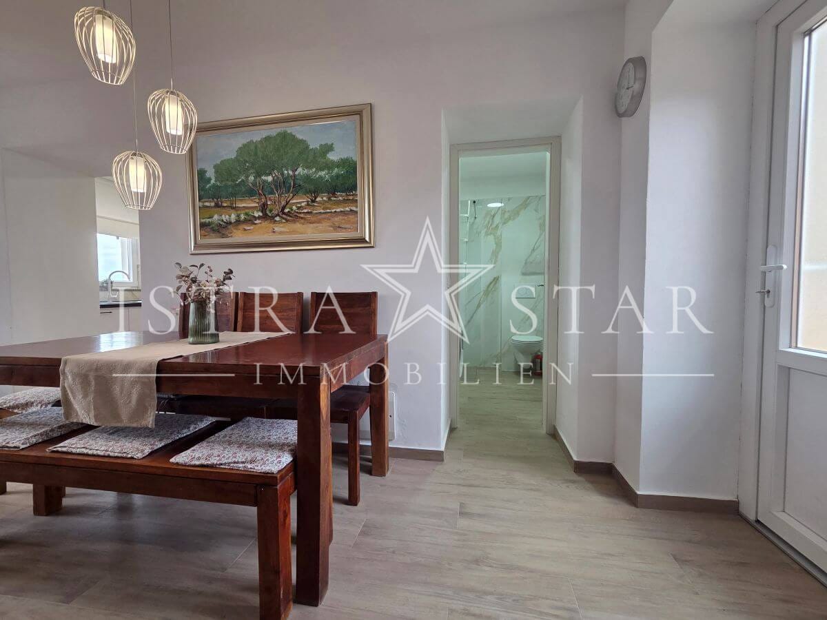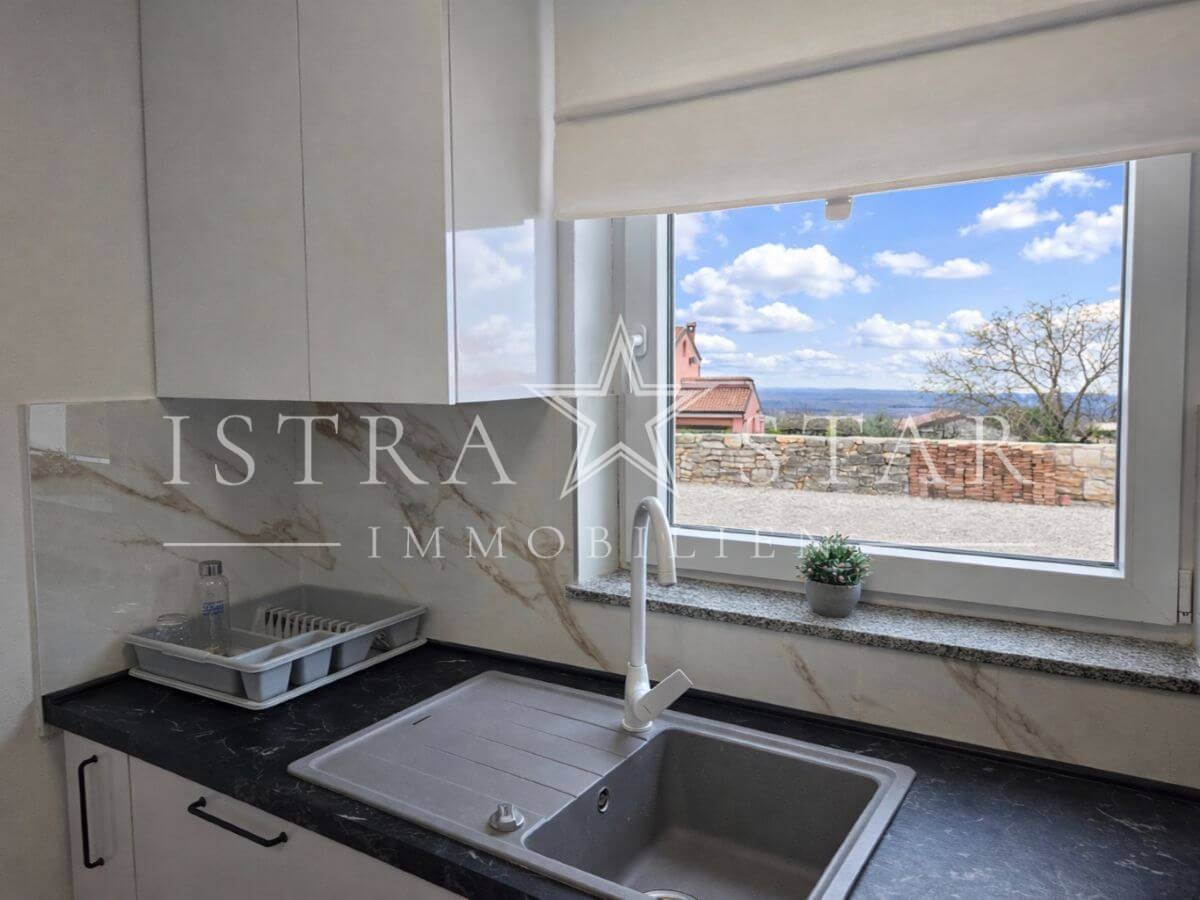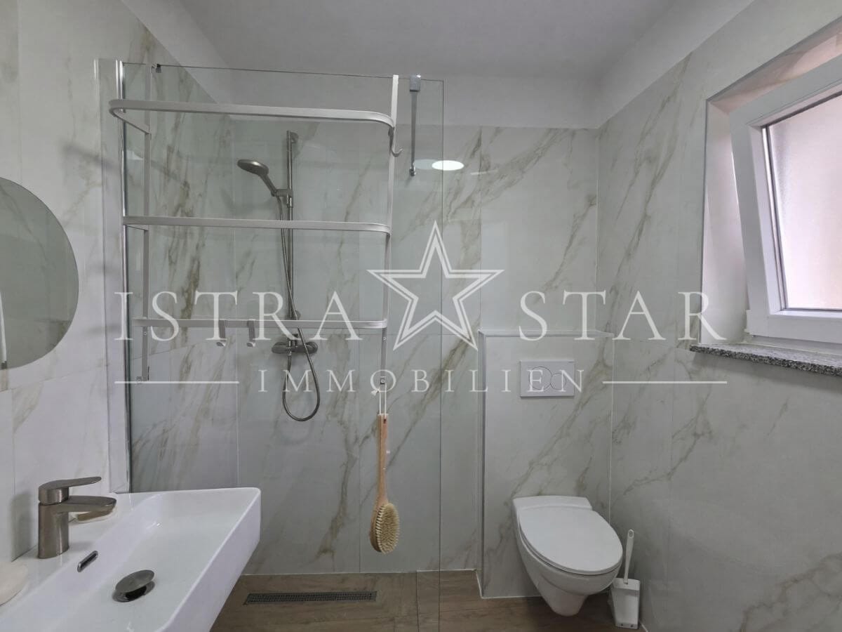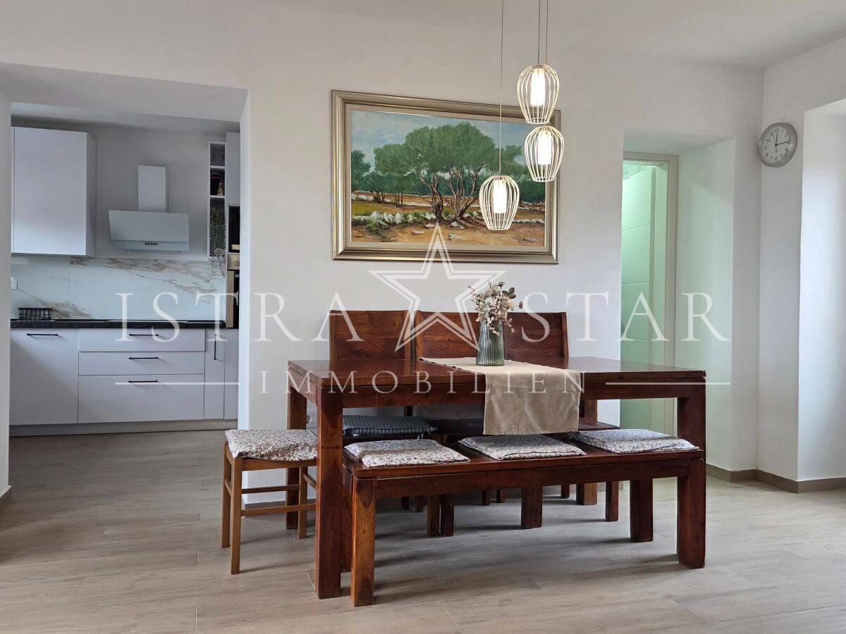 Dieses renovierte istrische Steinhaus vereint authentischen Charme mit moderner Ausstattung und einer ruhigen, begehrten Lage nahe Porec. Auf drei Etagen verteilt sich eine Wohnfläche von ca. 118 m², ergänzt durch einen geschützten Innenhof mit großzügiger Terrasse sowie einen wunderschönen Fernblick bis zum Meer. Die Immobilie wurde 2025 umfassend renoviert und befindet sich aktuell in den letzten Fertigstellungsarbeiten.