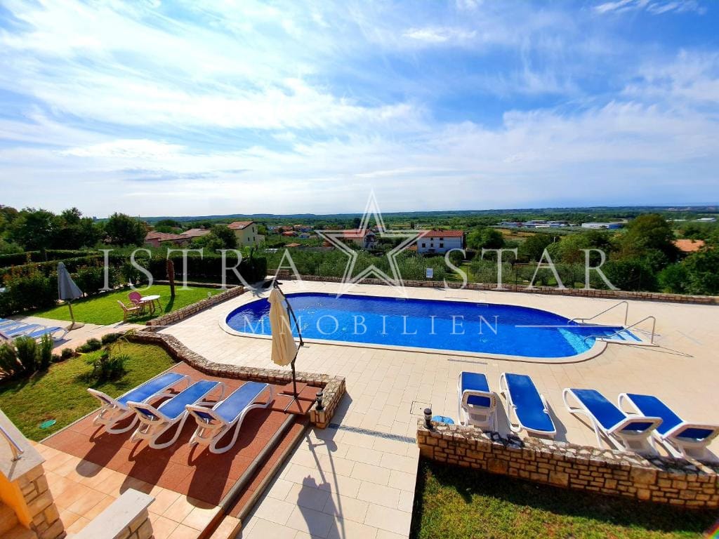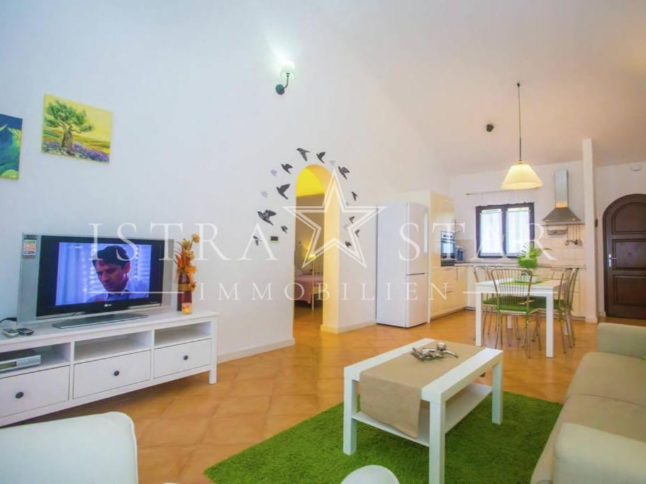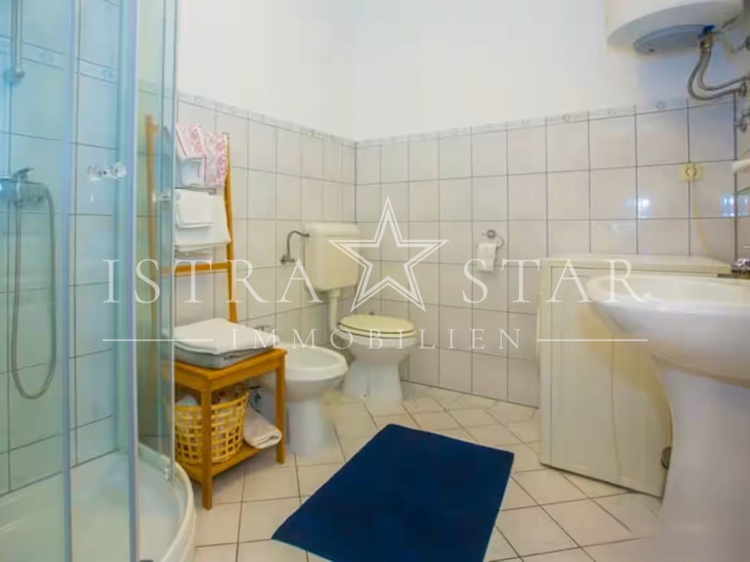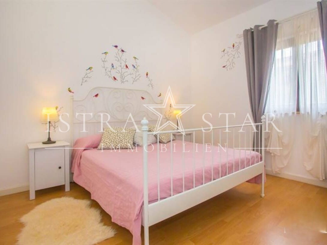 Dieses gepflegte Reihenhaus aus dem Jahr 2010 befindet sich in ruhiger, sonniger Lage nahe dem Zentrum von Porec und ist Teil einer ansprechend angelegten Wohnanlage mit Gemeinschaftspool und Meerblick. Die Süd-Ausrichtung sorgt ganztägig für viel Licht und ein angenehmes Wohngefühl.