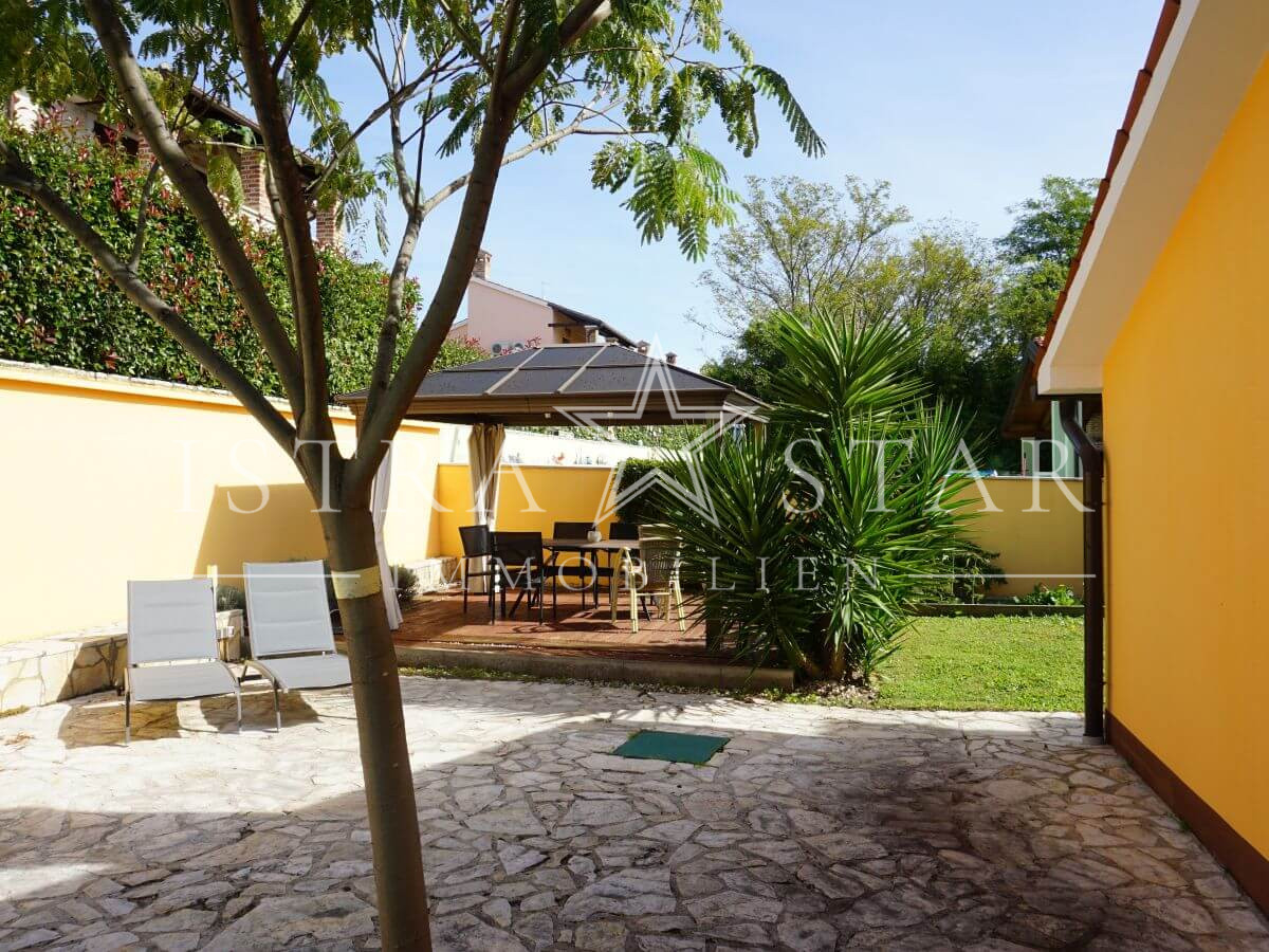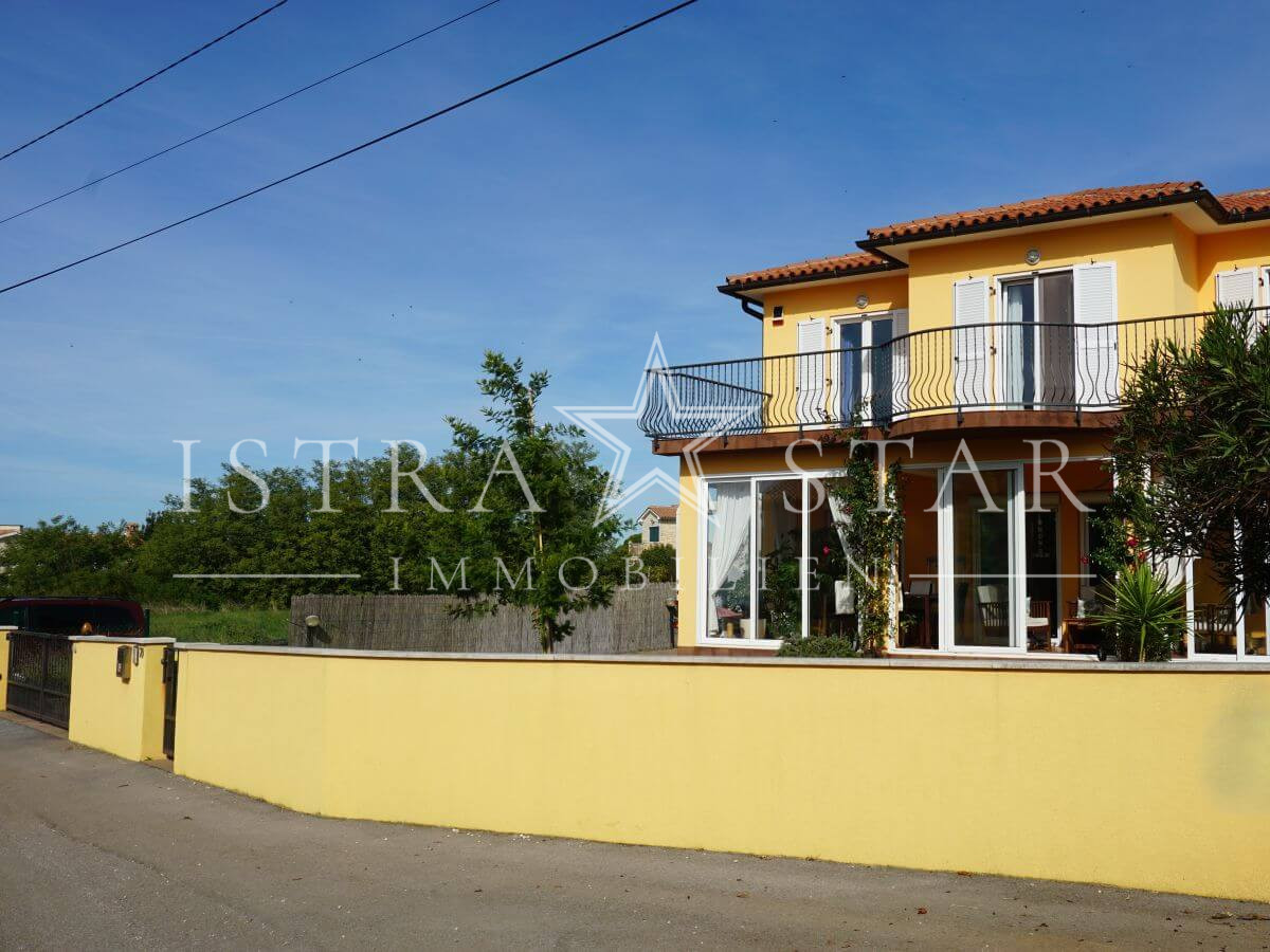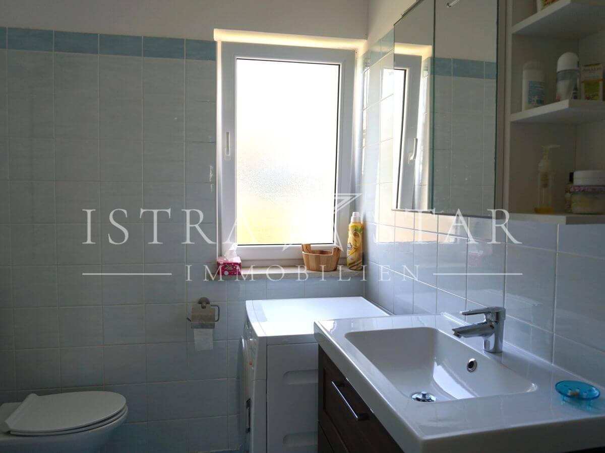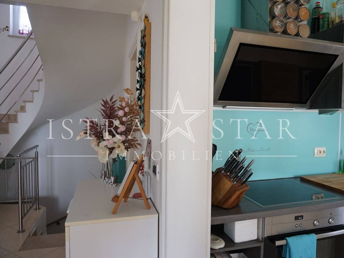 Dieses attraktive Haus verbindet Ruhe, Komfort und eine atemberaubende Aussicht in einer begehrten Weinregion nahe Porec. Die reine Wohnfläche von 111 m² ergänzt sich mit 53 m² Nutzfläche und verteilt sich über zwei Etagen (EG und OG) sowie einem zusätzlichen Kellerraum. Das Grundstück umfasst 681 m² und bietet einen gepflegten Garten mit Rasen, mediterranen Pflanzen und einem Pool hinter dem Haus. Ein Pavillon mit Sitzgelegenheit, ein Grill-Kamin sowie eine Chill- und Liegefläche laden zum Verweilen im Freien ein, während das umlaufende Mauerwerk Privatsphäre und Sicherheit gewährleistet. Eine Alarmanlage erhöht das Sicherheitsgefühl.
