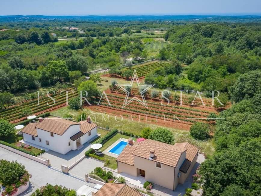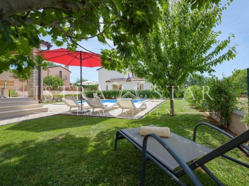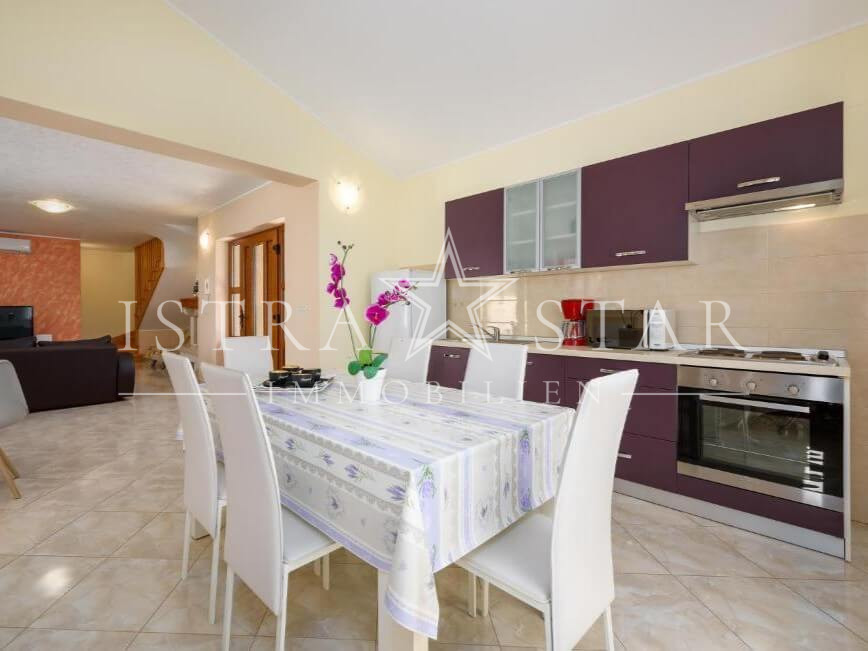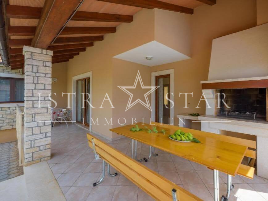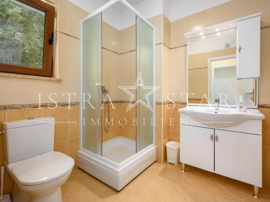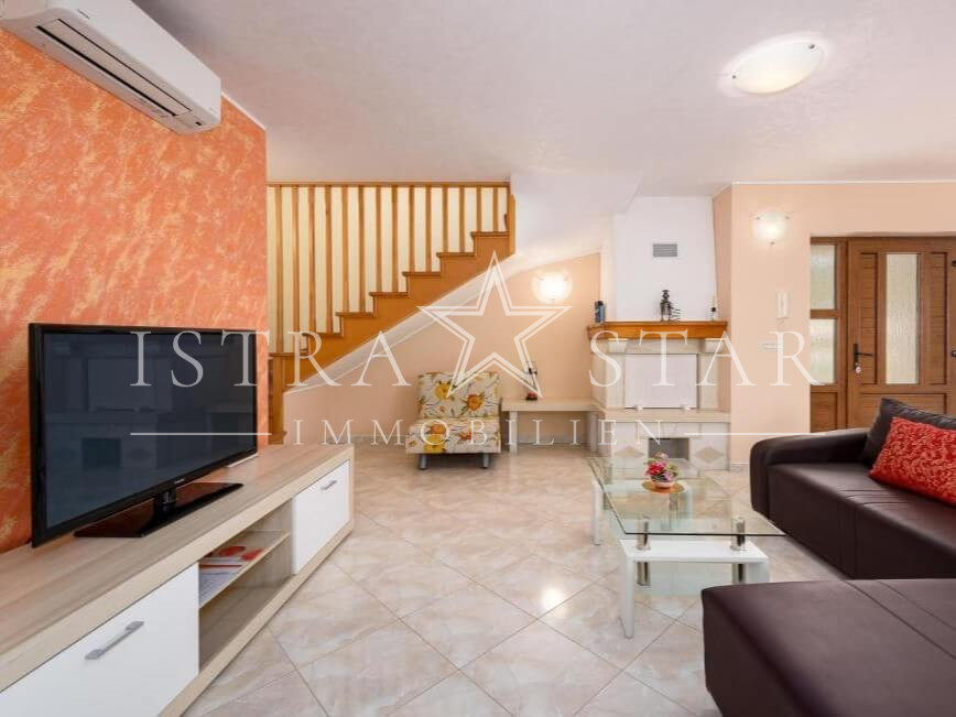 Für hohen Wohnkomfort sorgen moderne Inverter-Klimaanlagen, die Heizung und Kühlung zugleich ermöglichen. Ein Kamin im Wohnzimmer sorgt zudem an kühleren Tagen für behagliche Wärme. Die Lage ist ruhig und dennoch zentral: Das Meer liegt ca. 12 km entfernt, ebenso das pulsierende Zentrum von Porec mit vielfältigen Einkaufsmöglichkeiten, Restaurants und kulturellen Angeboten. In unmittelbarer Nähe befindet sich das Ortszentrum, sodass alle wichtigen Einrichtungen bequem erreichbar sind.