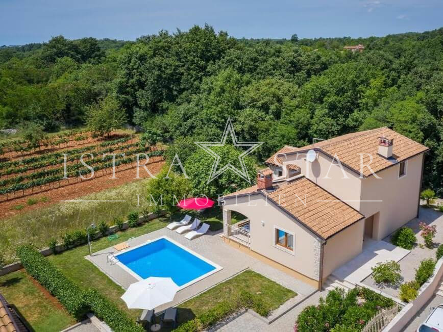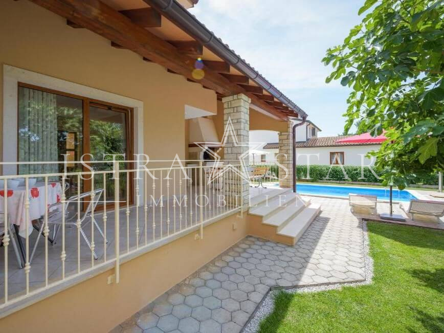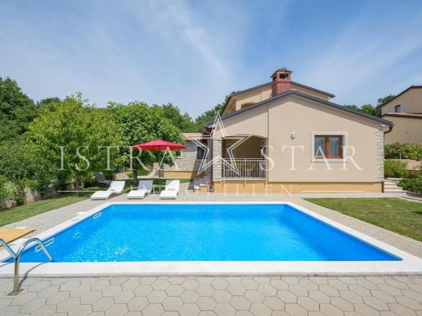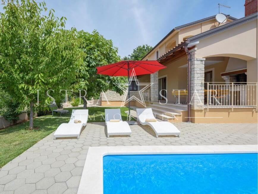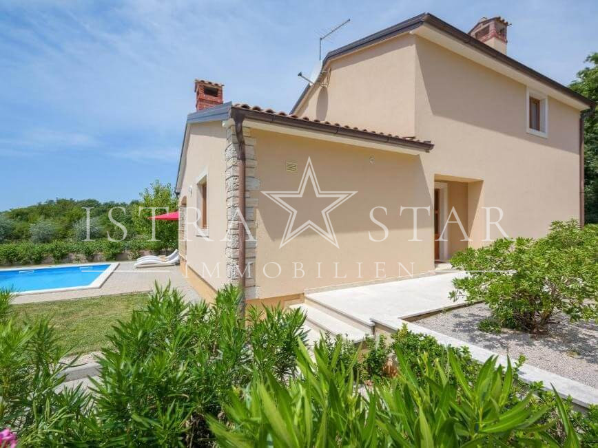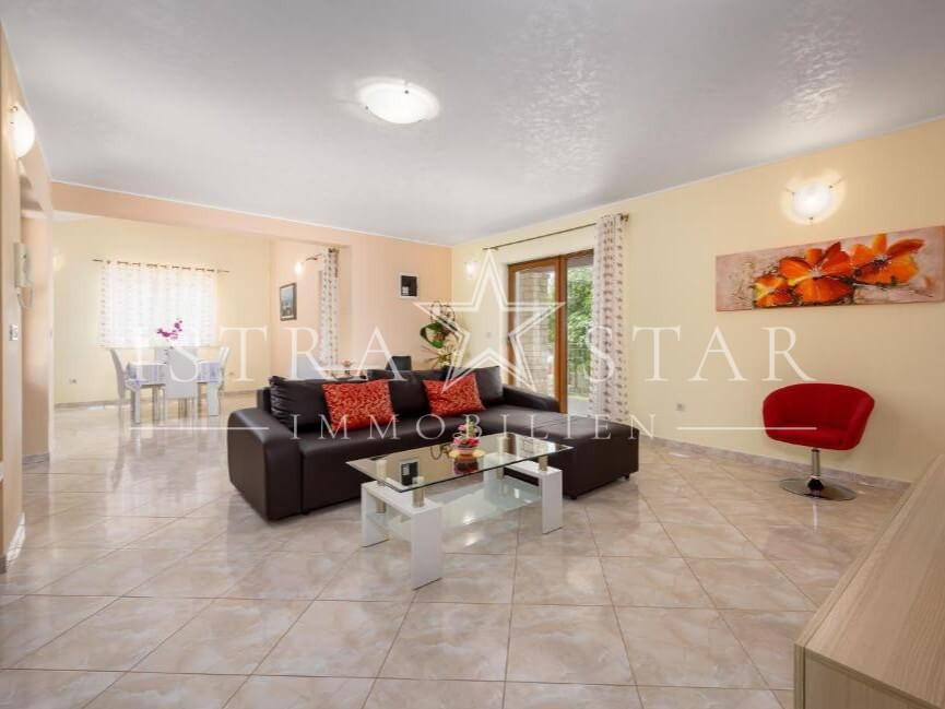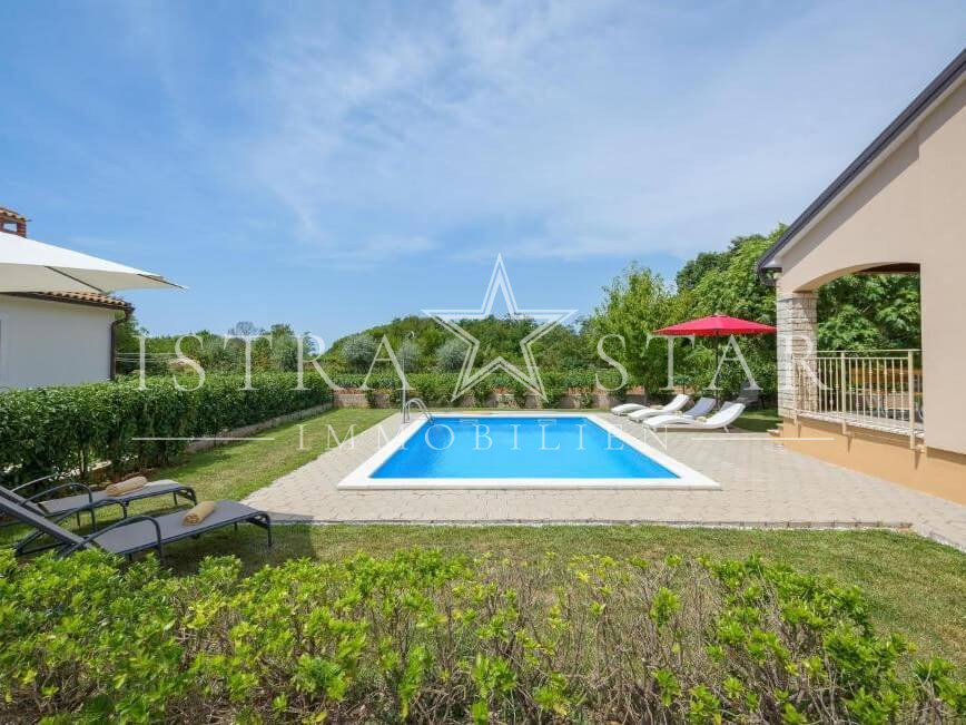 Für hohen Wohnkomfort sorgen moderne Inverter-Klimaanlagen, die Heizung und Kühlung zugleich ermöglichen. Ein Kamin im Wohnzimmer sorgt zudem an kühleren Tagen für behagliche Wärme. Die Lage ist ruhig und dennoch zentral: Das Meer liegt ca. 12 km entfernt, ebenso das pulsierende Zentrum von Porec mit vielfältigen Einkaufsmöglichkeiten, Restaurants und kulturellen Angeboten. In unmittelbarer Nähe befindet sich das Ortszentrum, sodass alle wichtigen Einrichtungen bequem erreichbar sind.