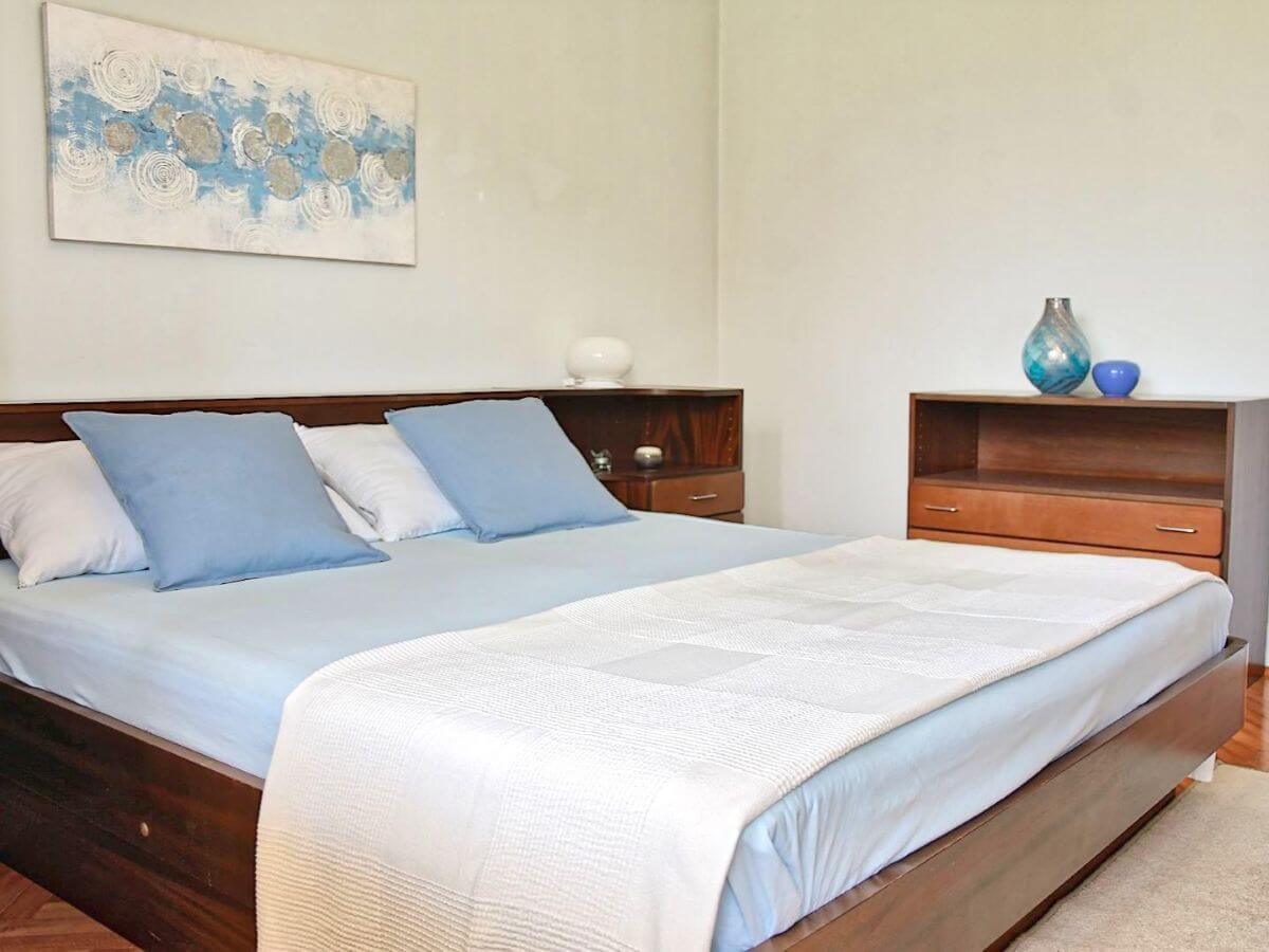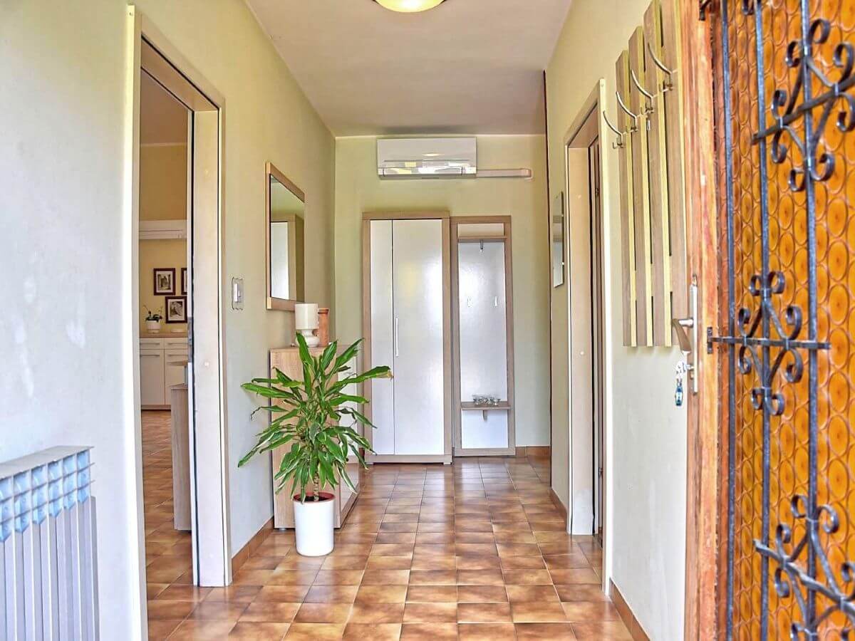 Über eine Außentreppe erreichen Sie die obere Etage, in der sich ein weiterer Flur, eine Küche mit Essbereich, ein großes Wohnzimmer, zwei weitere Schlafzimmer sowie ein Bad mit Badewanne befinden. Zwei Balkone – einer an der Vorderseite, einer an der Rückseite des Hauses. Eine weitere Außentreppe führt zum Dachboden und zur Dachterrasse, welche Ihnen einen Blick über die Umgebung und das Meer eröffnet.