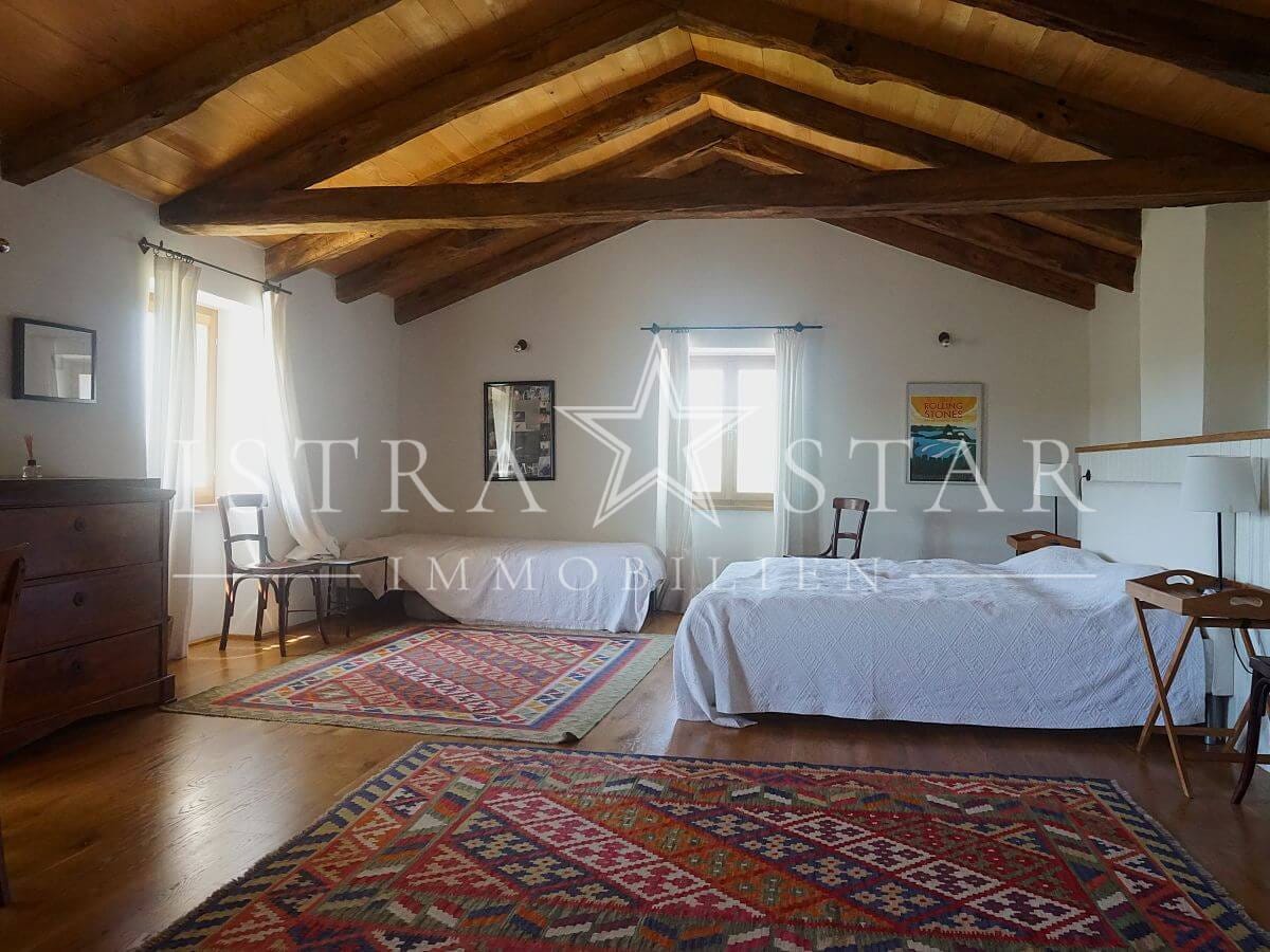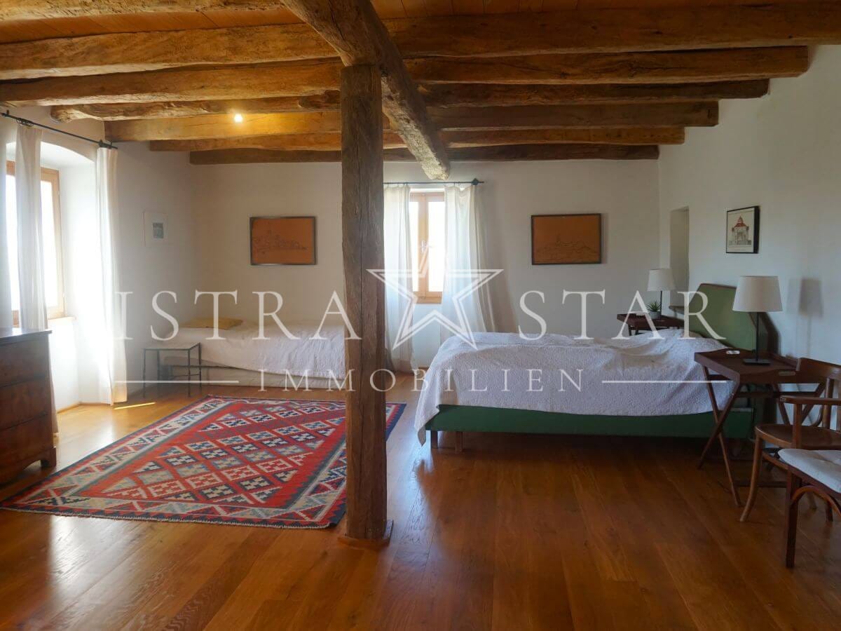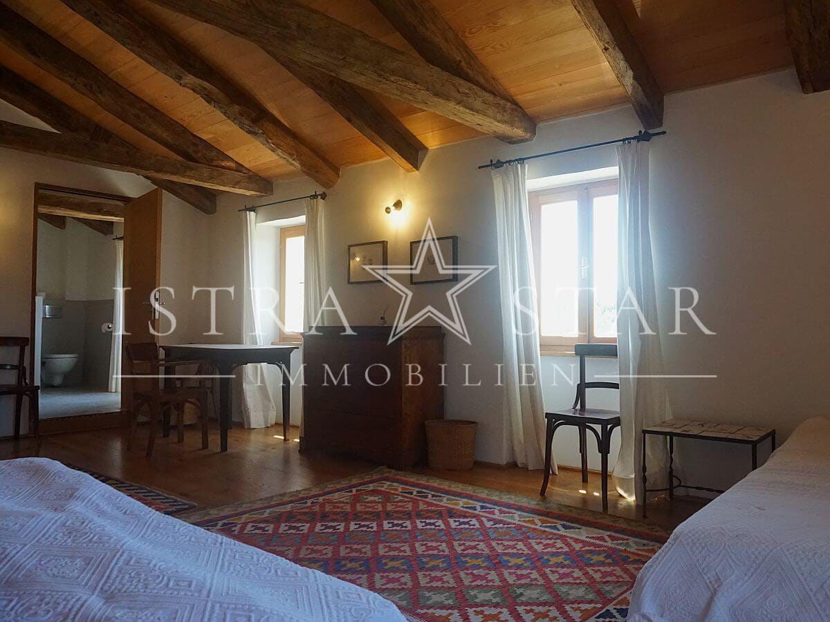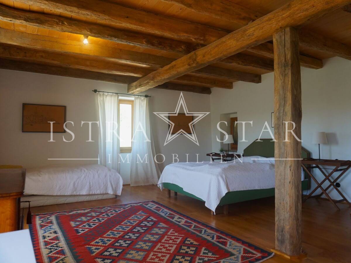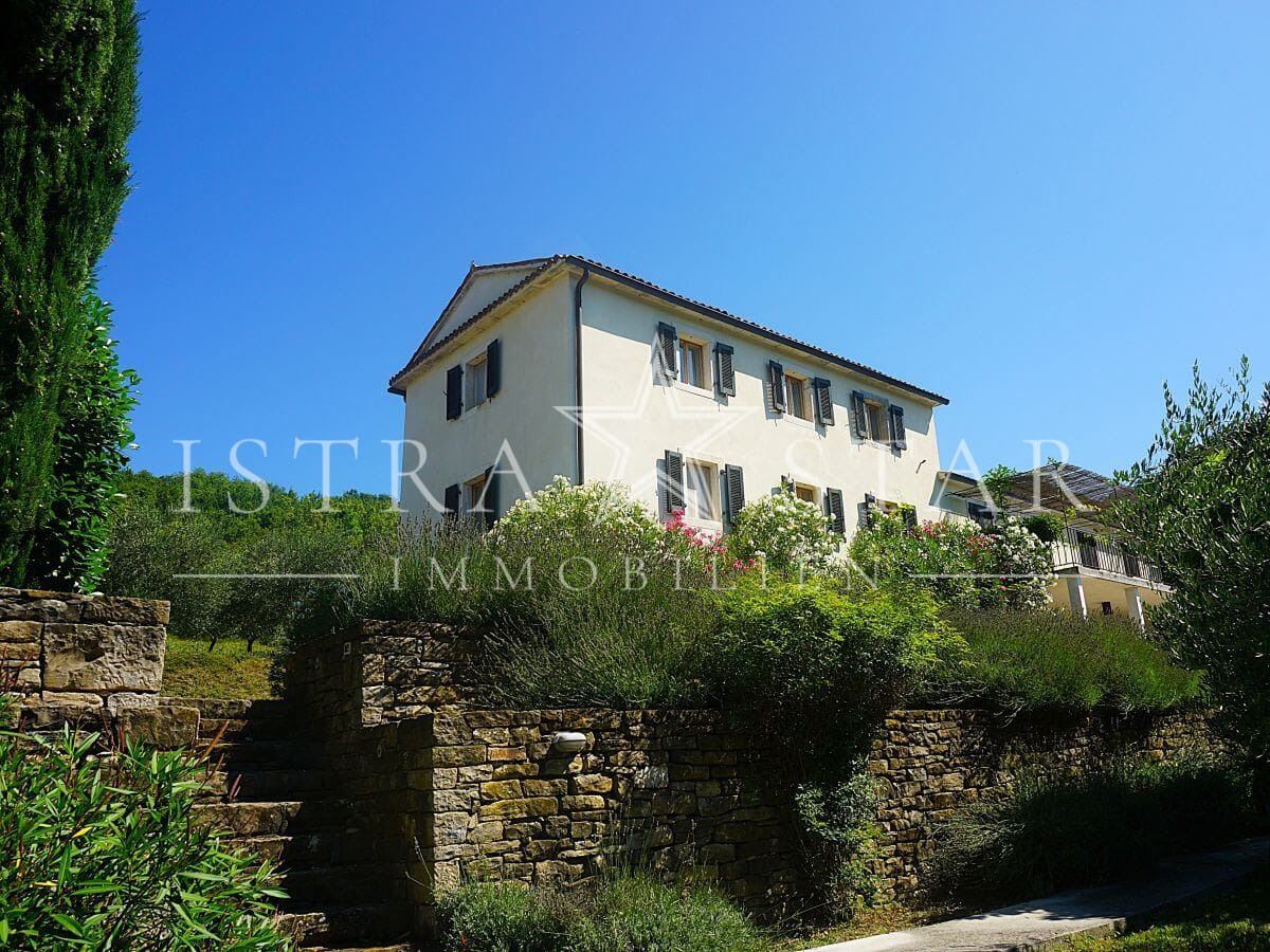 Dieses einzigartige Anwesen vereint historischen Charme, moderne Annehmlichkeiten und eine idyllische Lage inmitten der malerischen Weinanbaugebiete Istriens. Das im Jahr 1920 (ca.) erbaute Steinhaus mit einem zusätzlichen Anbau erstreckt sich über drei Etagen und bietet eine beeindruckende Wohnfläche von ca. 390 m². Das großzügige Grundstück umfasst insgesamt 9.633 m², verteilt auf vier Flurstücke: das Hauptgrundstück mit Haus und Pool (2.421 m²) sowie drei weitere Flurstücke mit 1.639 m², 4.582 m² und 991 m², die vielfältige Gestaltungsmöglichkeiten bieten.