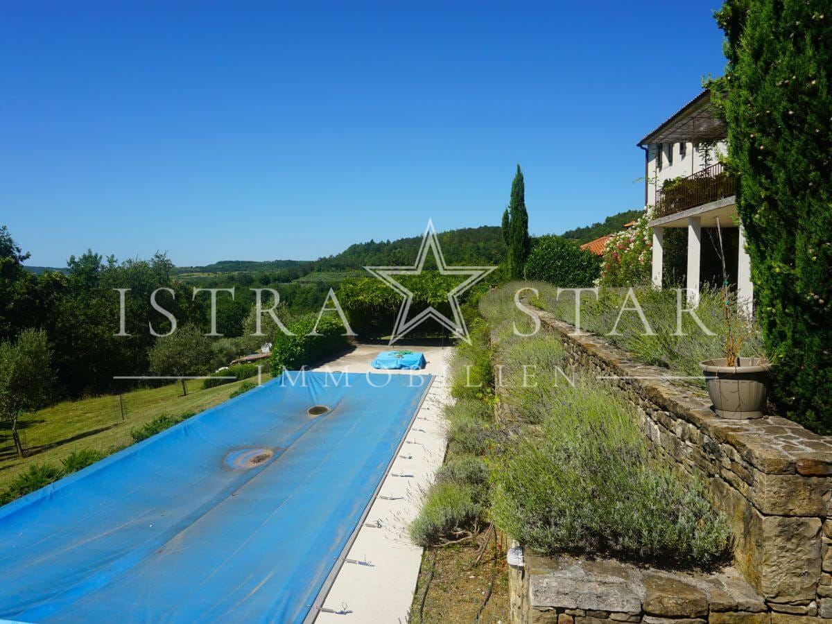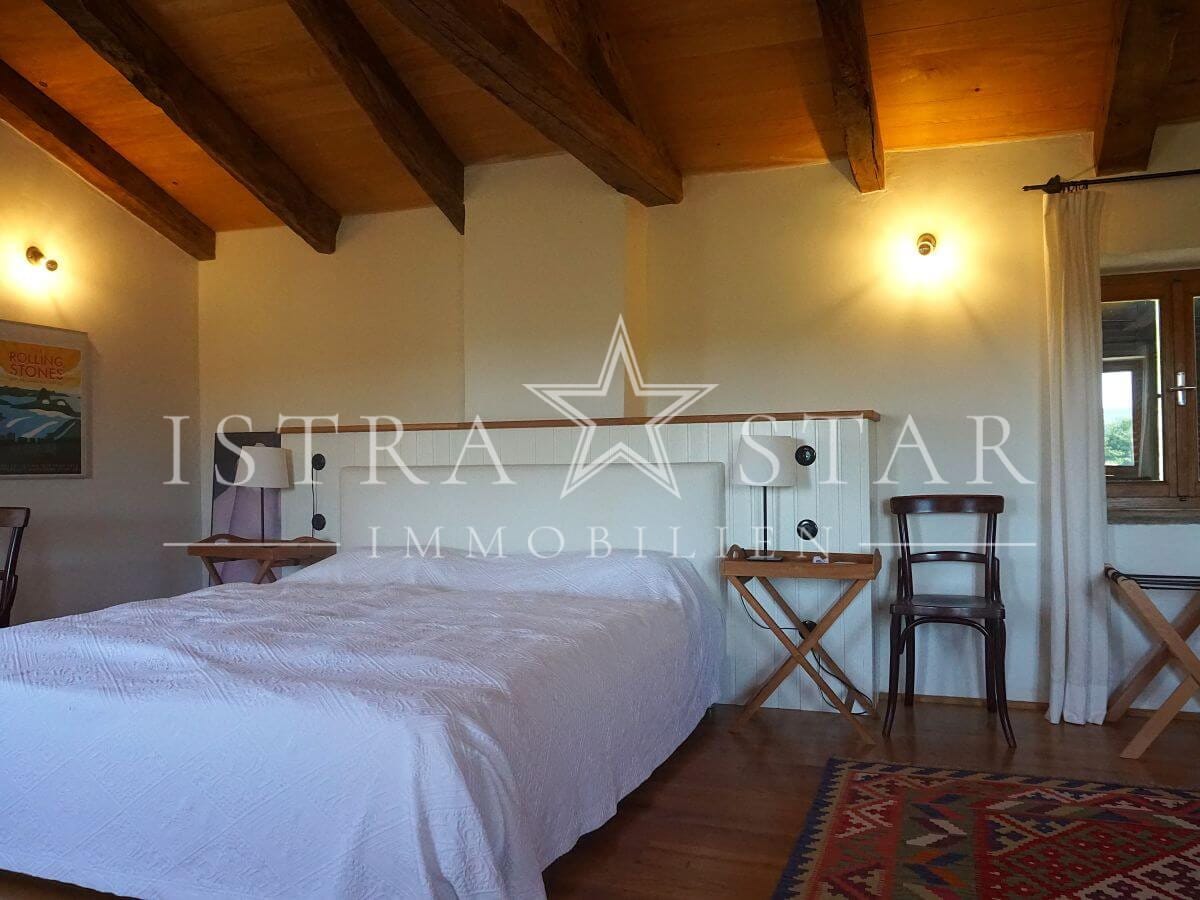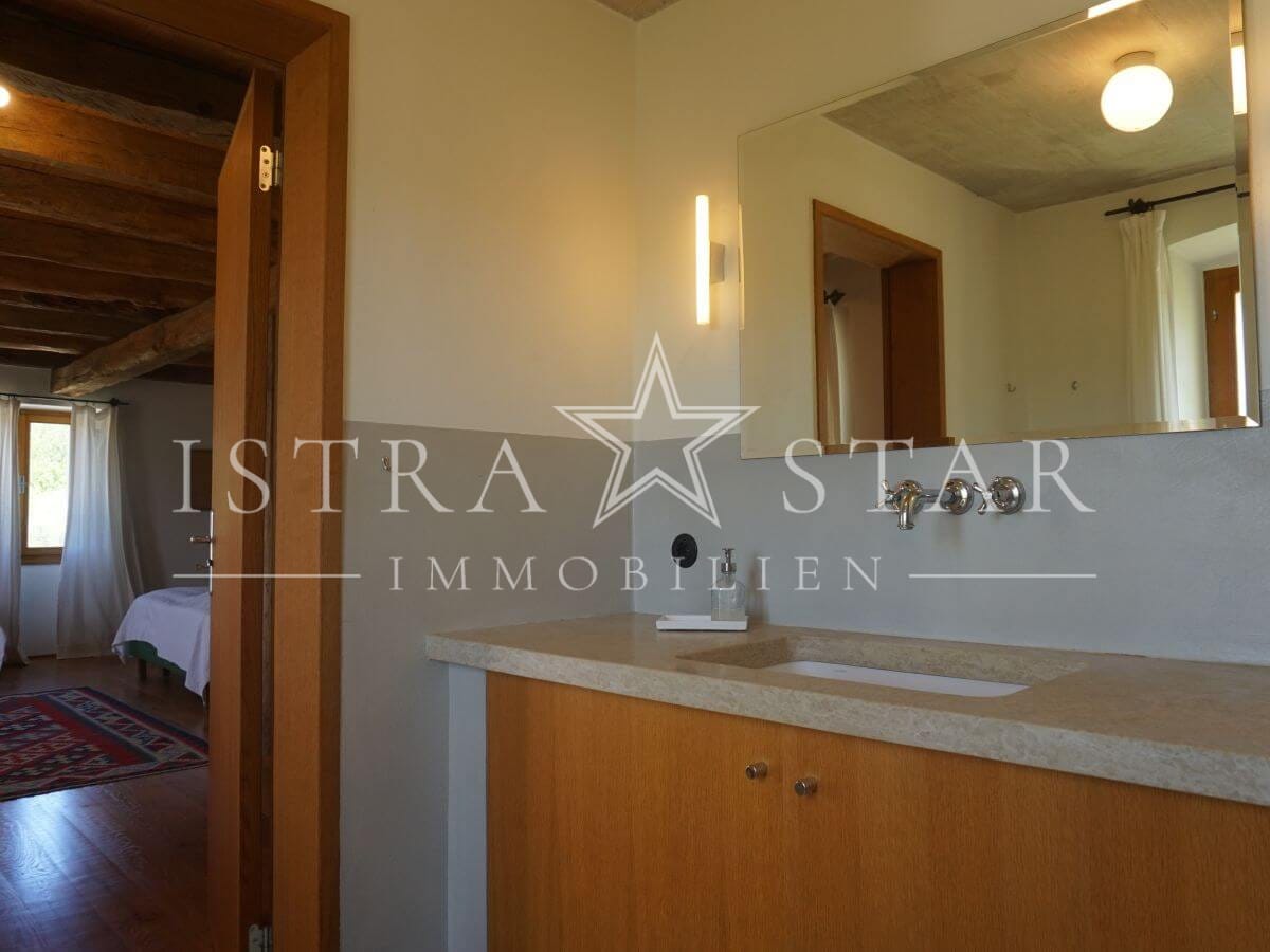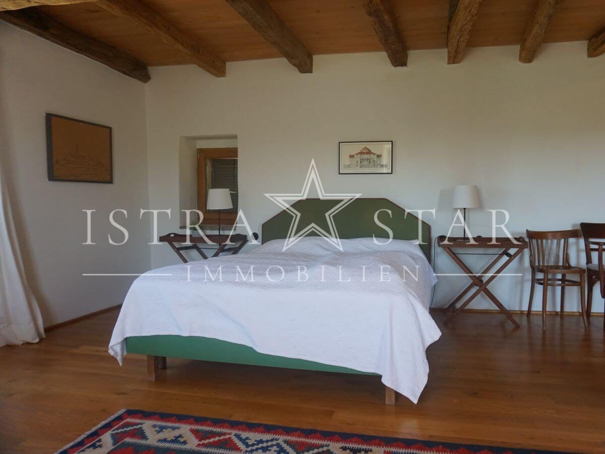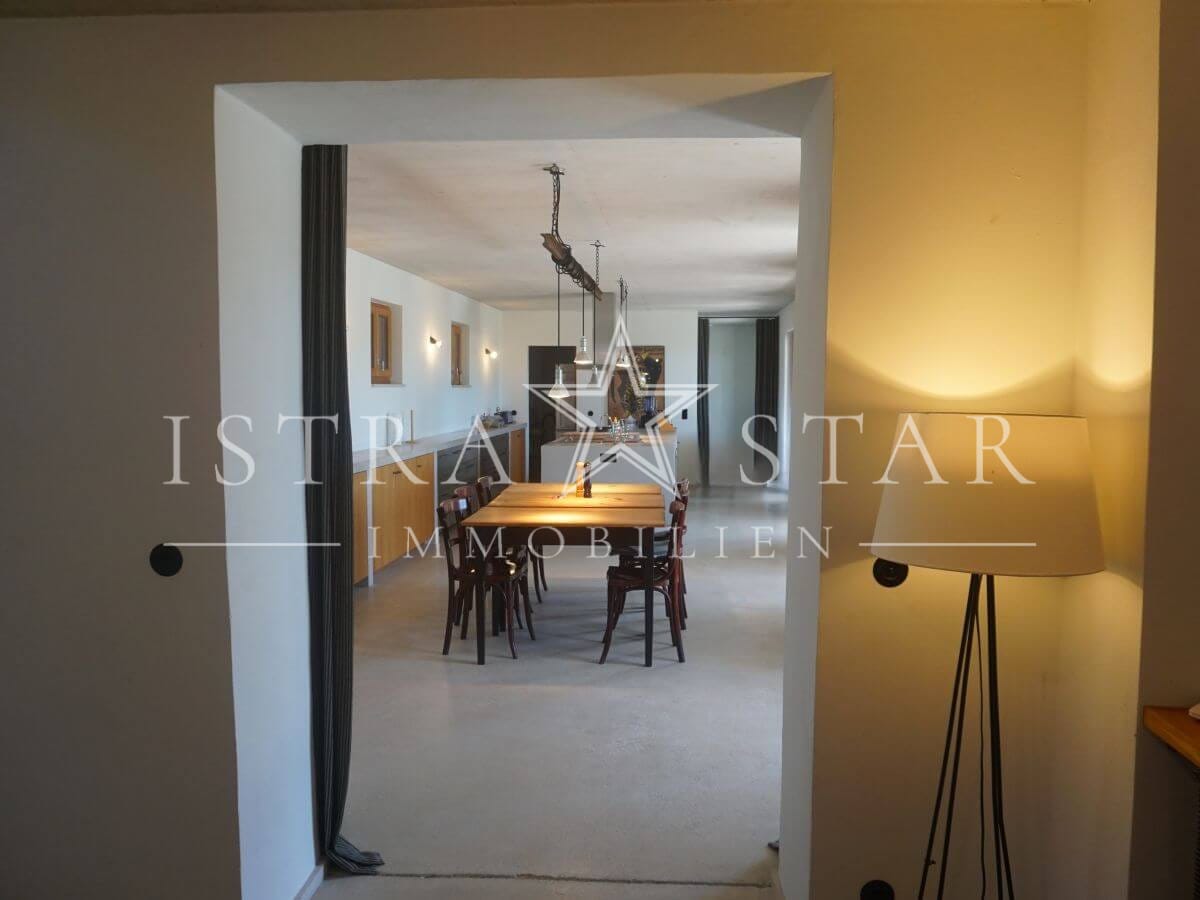 Dieses einzigartige Anwesen vereint historischen Charme, moderne Annehmlichkeiten und eine idyllische Lage inmitten der malerischen Weinanbaugebiete Istriens. Das im Jahr 1920 (ca.) erbaute Steinhaus mit einem zusätzlichen Anbau erstreckt sich über drei Etagen und bietet eine beeindruckende Wohnfläche von ca. 390 m². Das großzügige Grundstück umfasst insgesamt 9.633 m², verteilt auf vier Flurstücke: das Hauptgrundstück mit Haus und Pool (2.421 m²) sowie drei weitere Flurstücke mit 1.639 m², 4.582 m² und 991 m², die vielfältige Gestaltungsmöglichkeiten bieten.