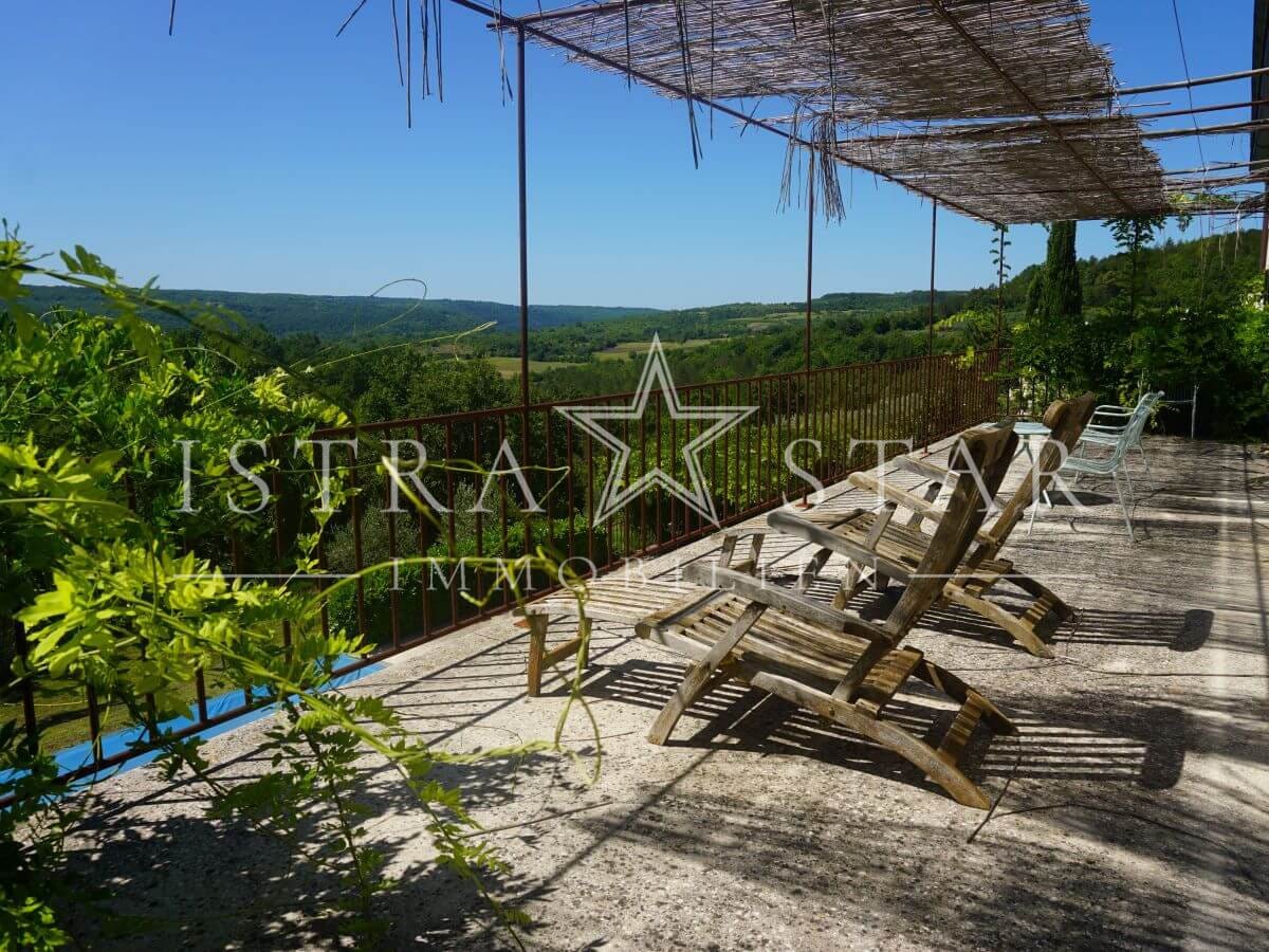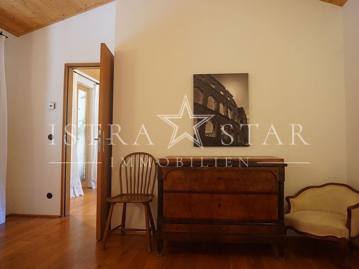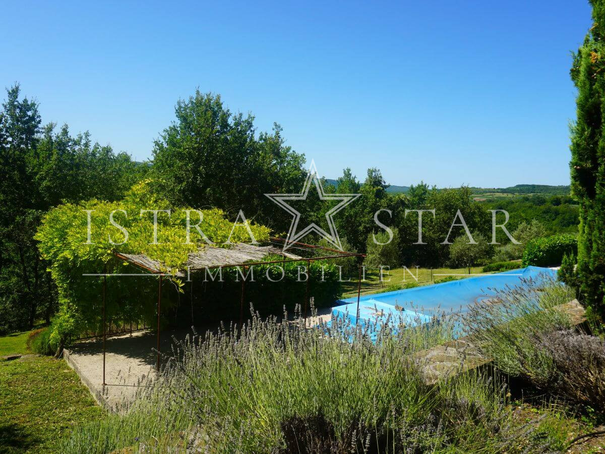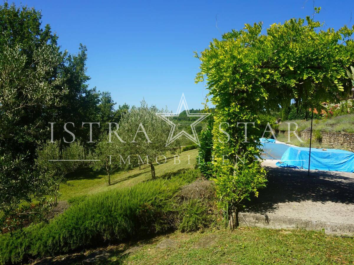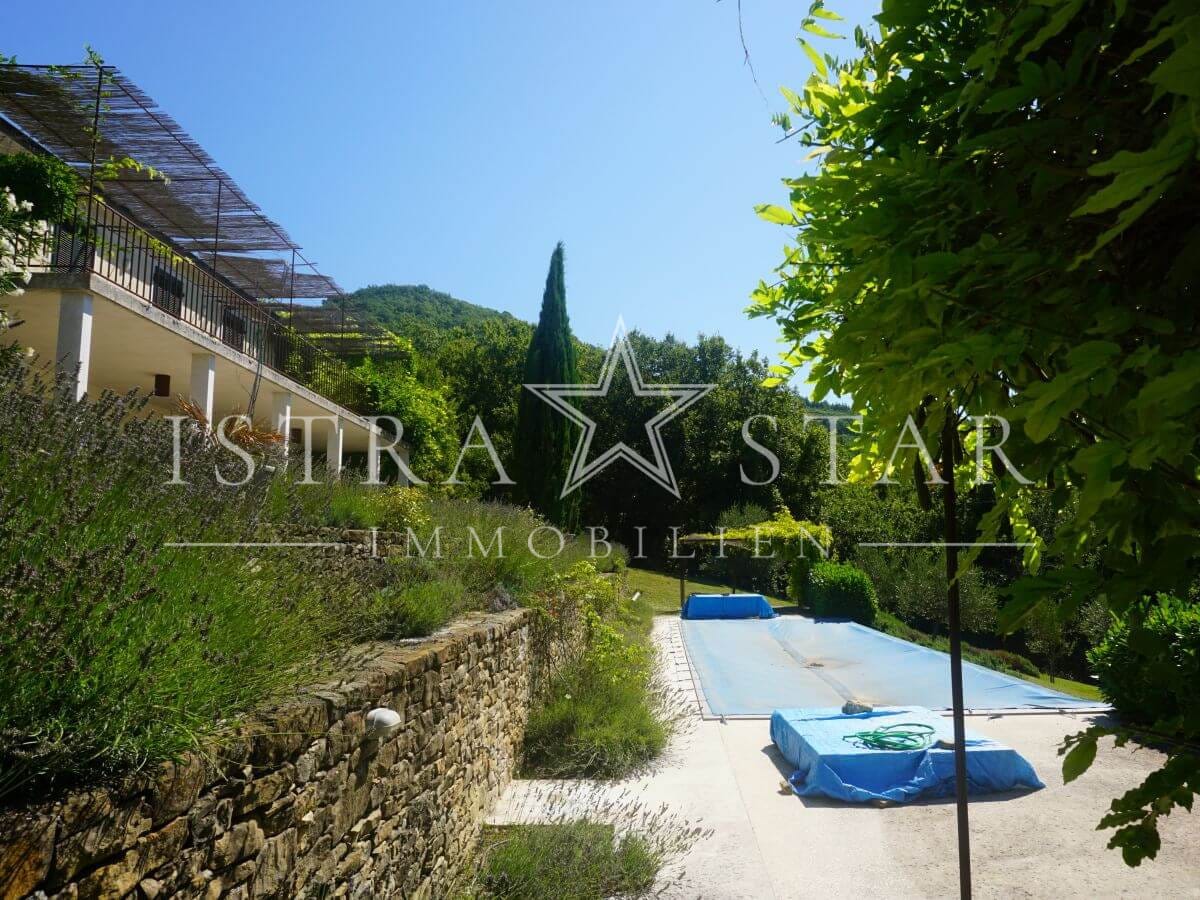 Dieses einzigartige Anwesen vereint historischen Charme, moderne Annehmlichkeiten und eine idyllische Lage inmitten der malerischen Weinanbaugebiete Istriens. Das im Jahr 1920 (ca.) erbaute Steinhaus mit einem zusätzlichen Anbau erstreckt sich über drei Etagen und bietet eine beeindruckende Wohnfläche von ca. 390 m². Das großzügige Grundstück umfasst insgesamt 9.633 m², verteilt auf vier Flurstücke: das Hauptgrundstück mit Haus und Pool (2.421 m²) sowie drei weitere Flurstücke mit 1.639 m², 4.582 m² und 991 m², die vielfältige Gestaltungsmöglichkeiten bieten.